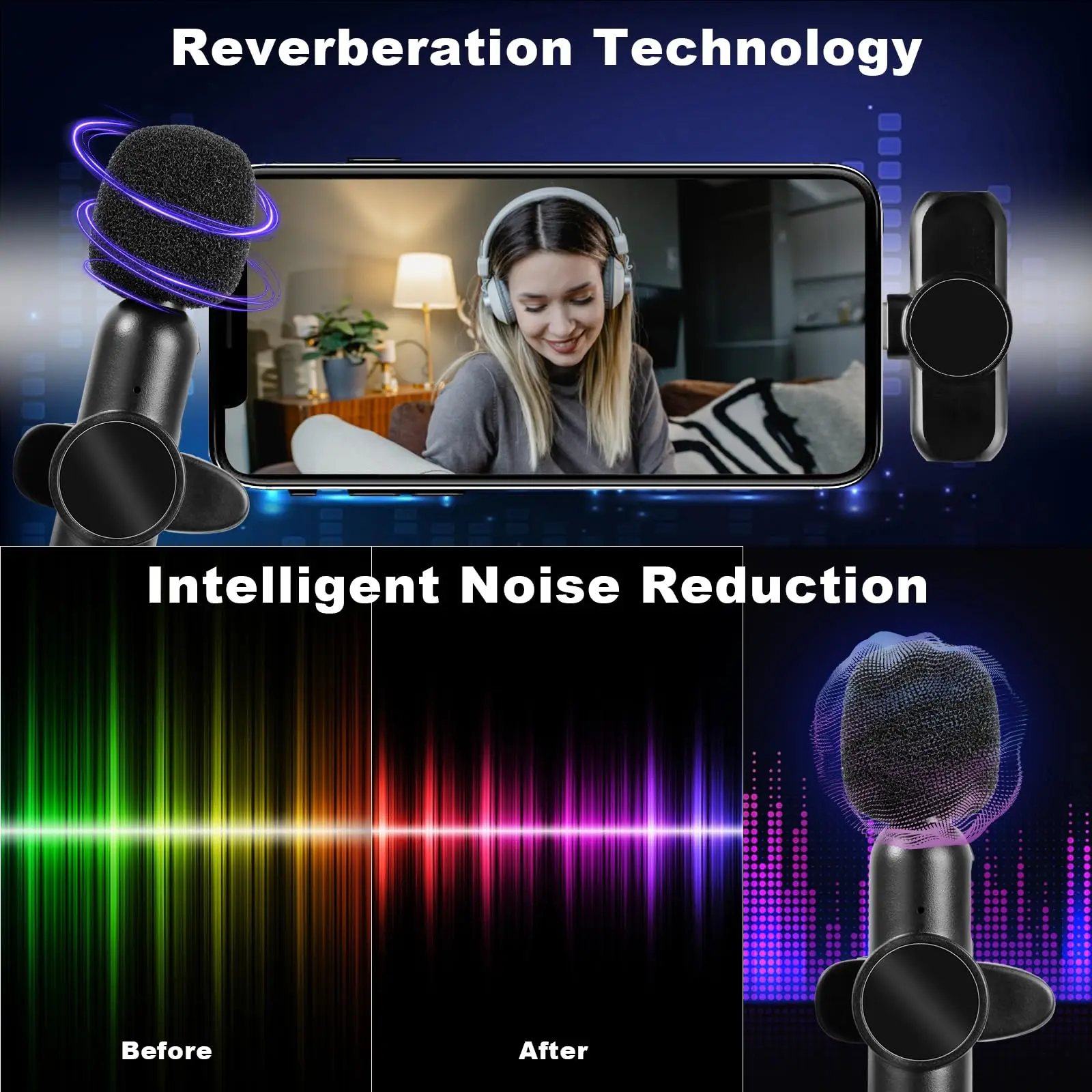 Micrófono Lavalier inalámbrico de 2,4G con cancelación de ruido, grabación de Audio y vídeo para iPhone/iPad/Android/Xiaomi/Samsung, micrófono de juego en vivo