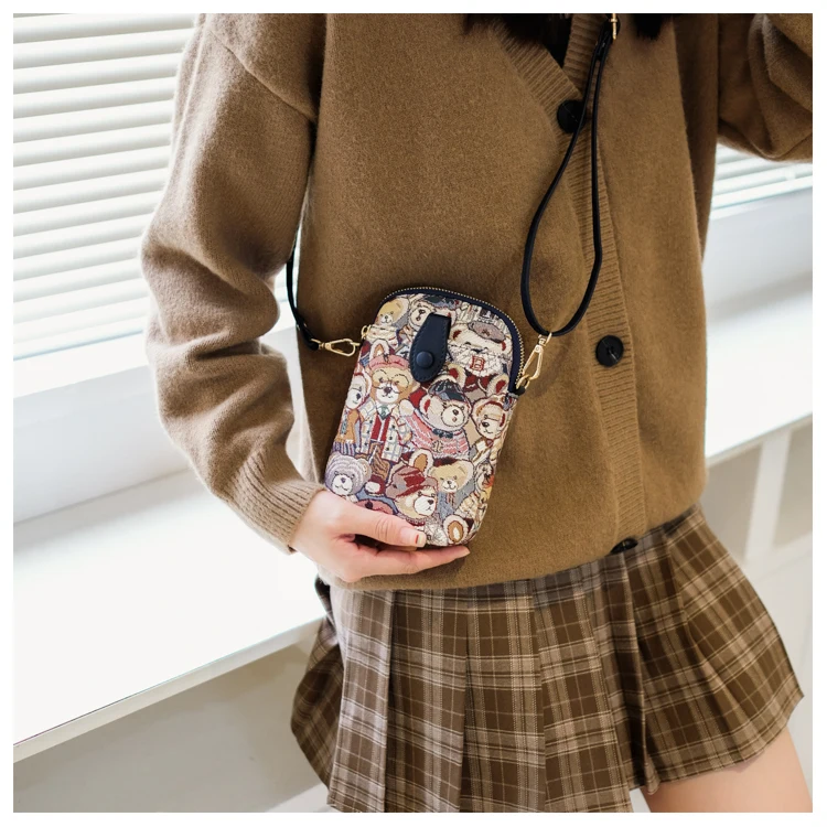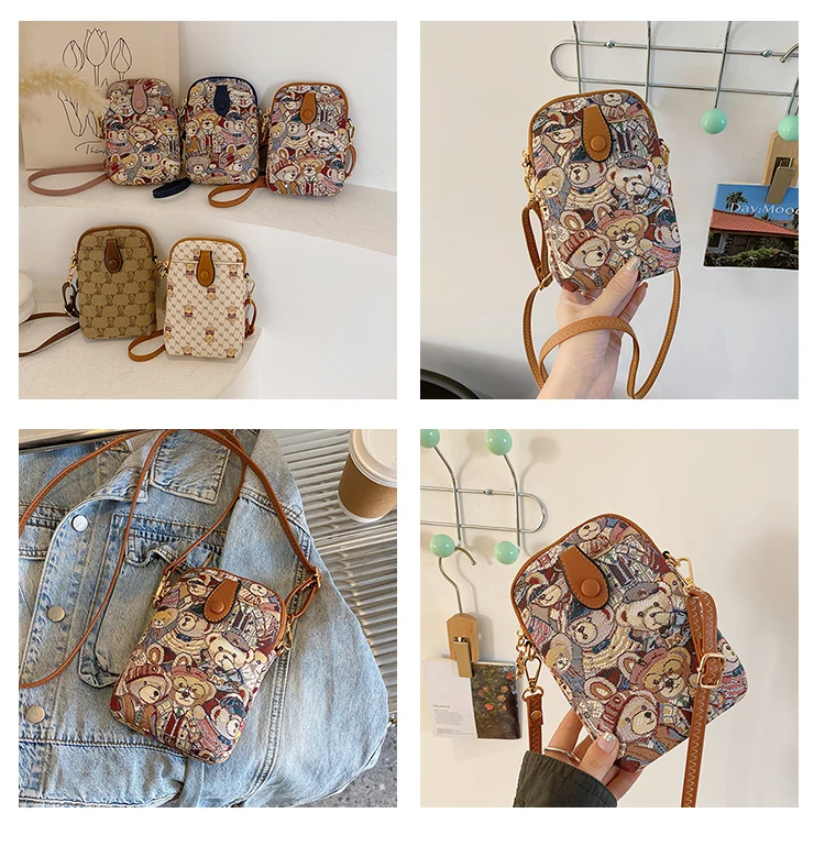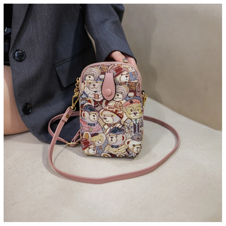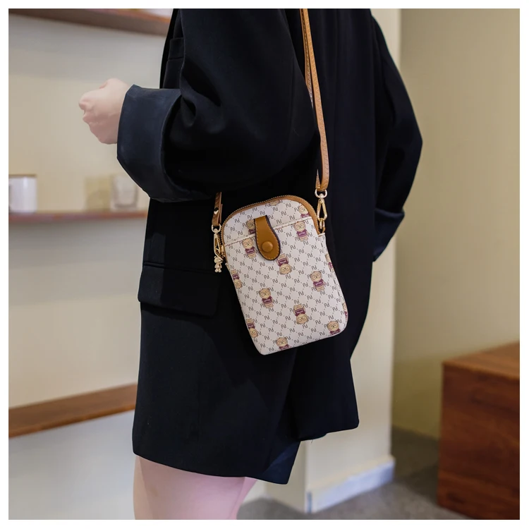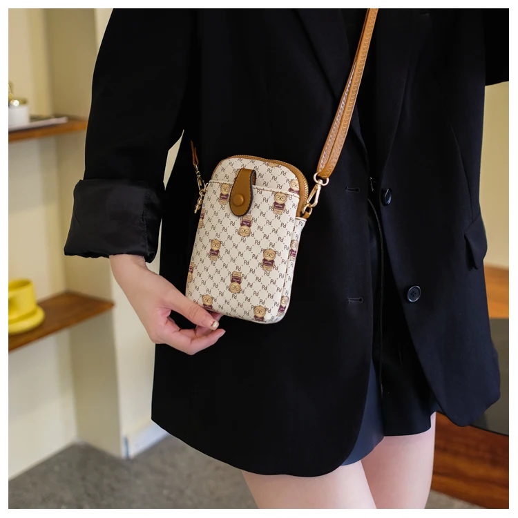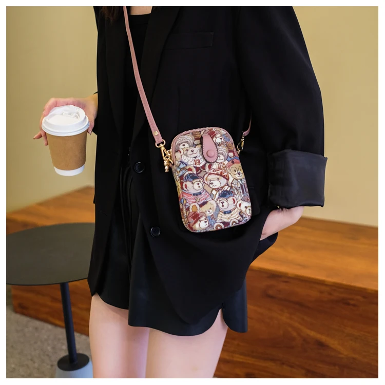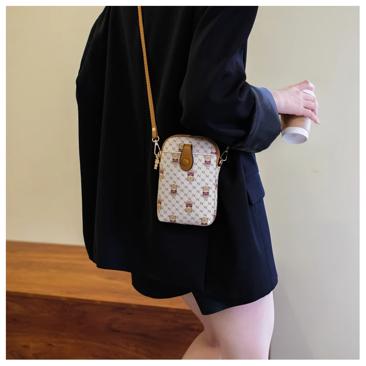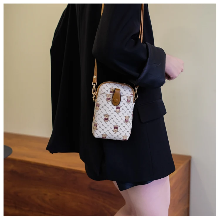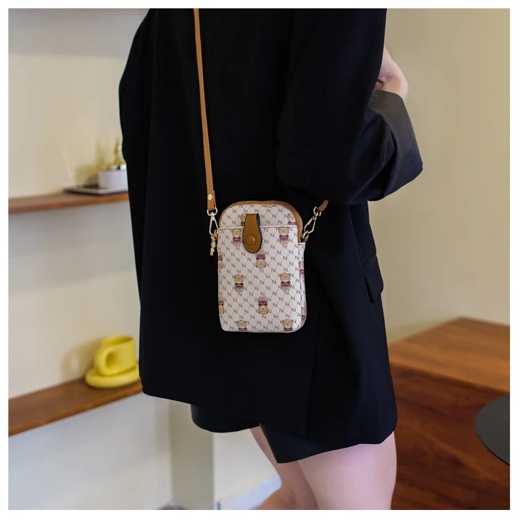 Mini bolso portátil para teléfono móvil para mujer, bandolera de hombro a la moda, versátil, con diseño de oso de lujo