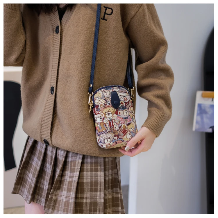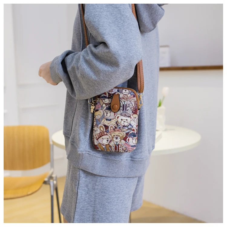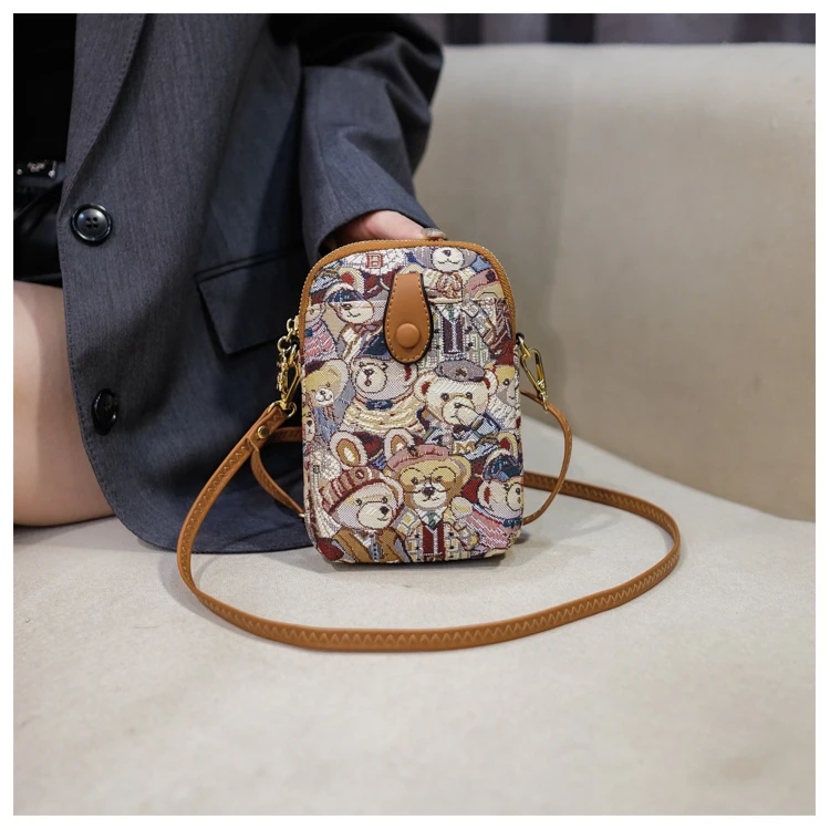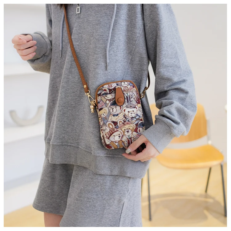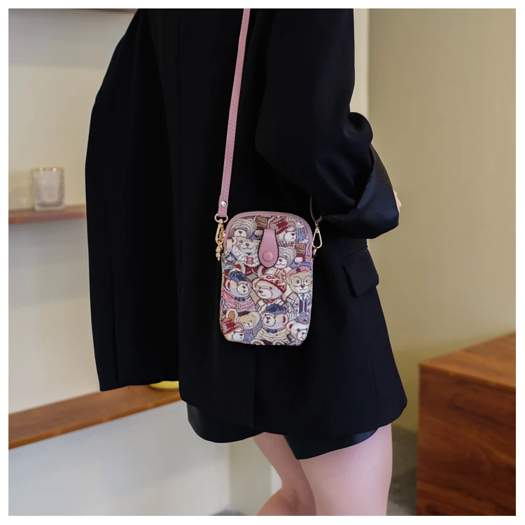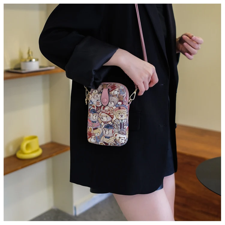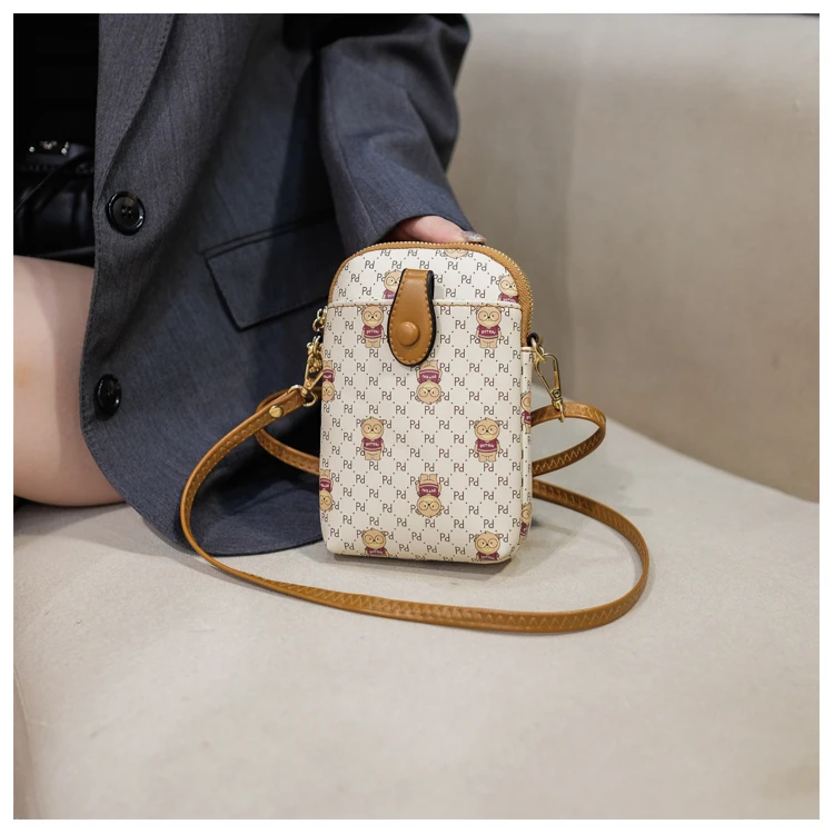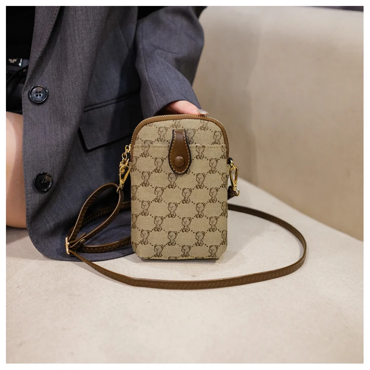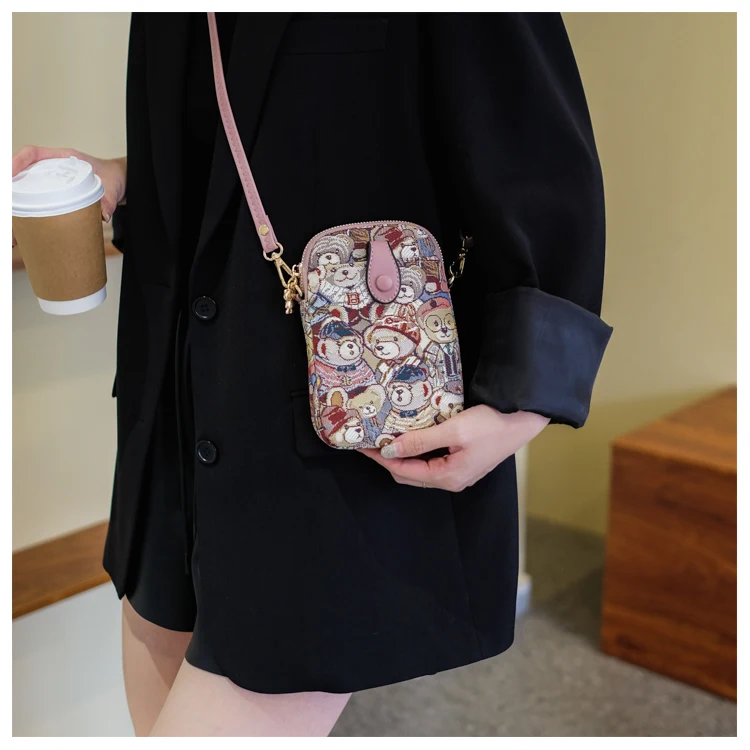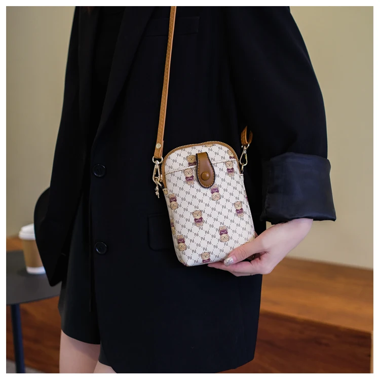 Mini bolso portátil para teléfono móvil para mujer, bandolera de hombro a la moda, versátil, con diseño de oso de lujo