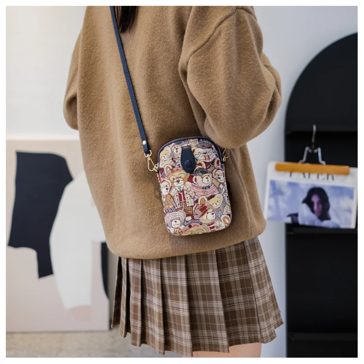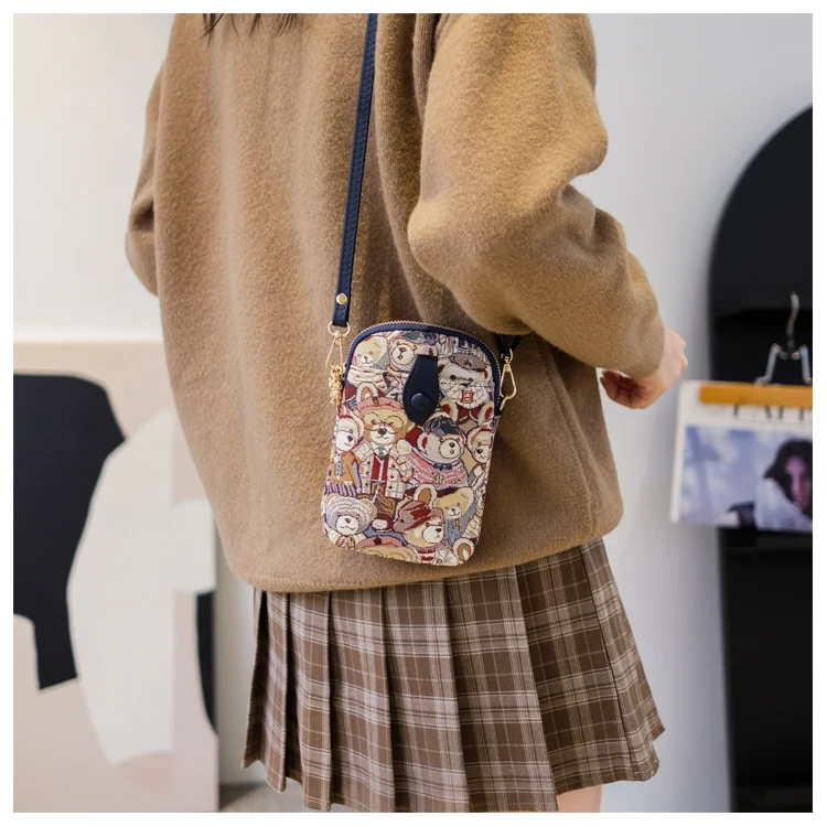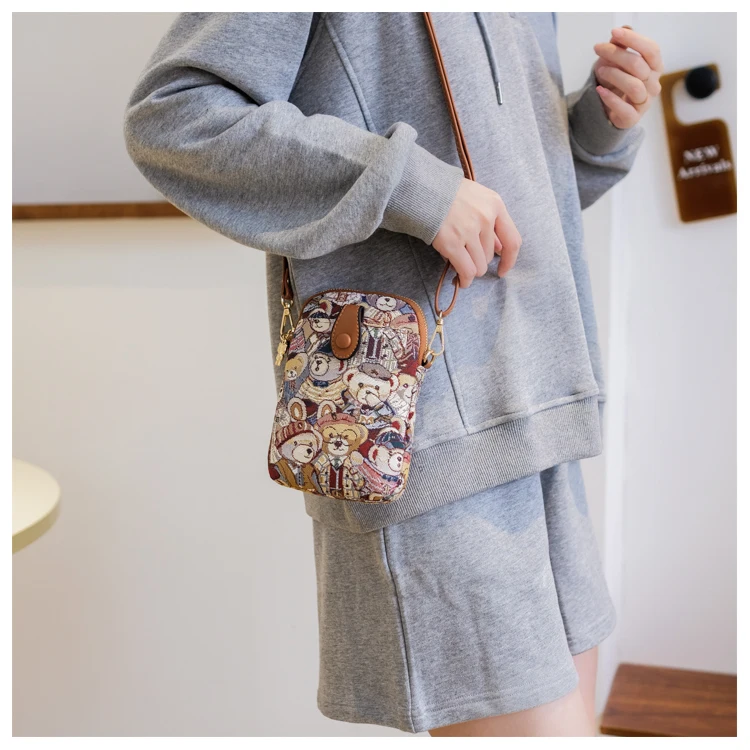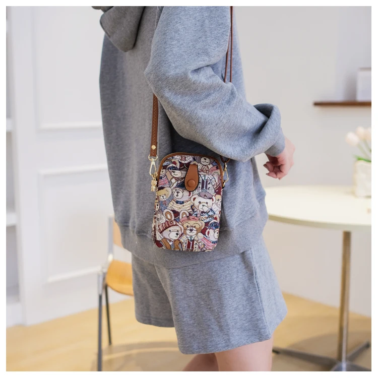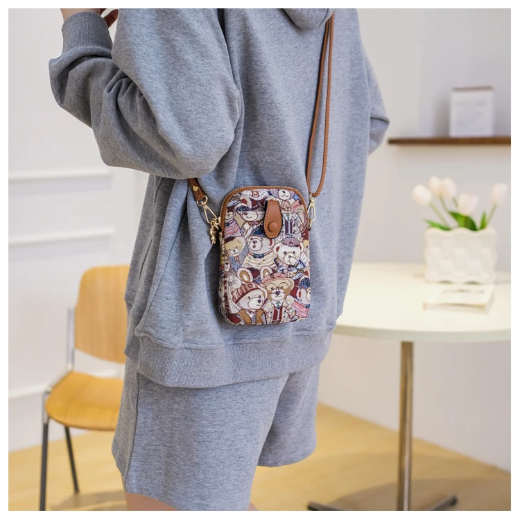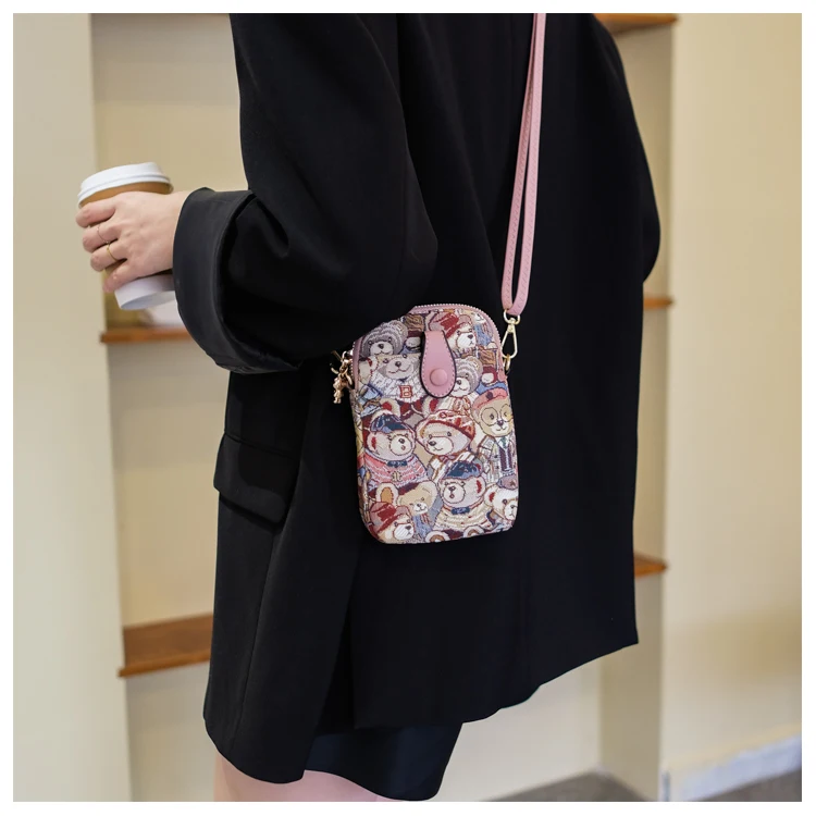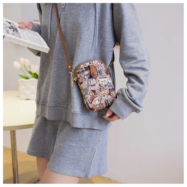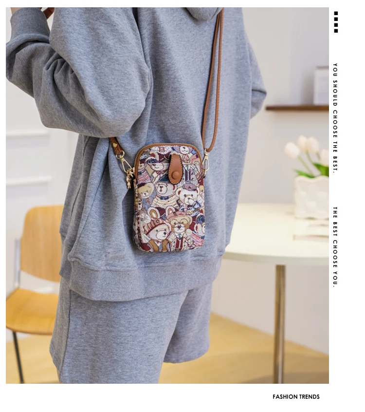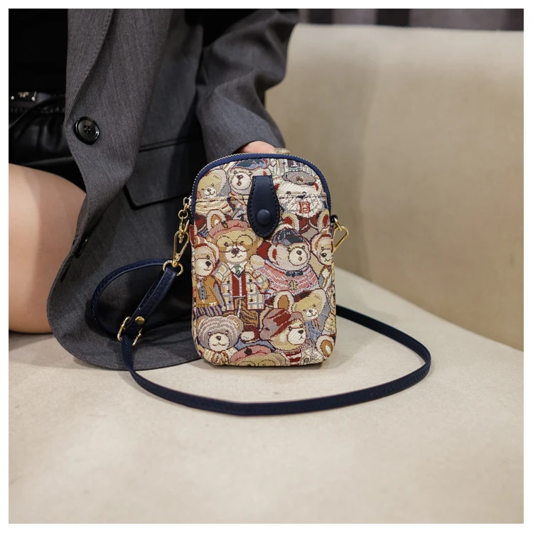 Mini bolso portátil para teléfono móvil para mujer, bandolera de hombro a la moda, versátil, con diseño de oso de lujo