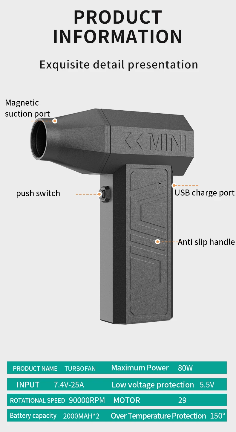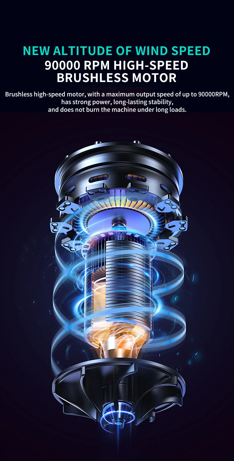 Ventilador Turbo de 200000 RPM, colector de polvo de huracanes de alta velocidad, mini ventilador violento portátil inalámbrico de mano
