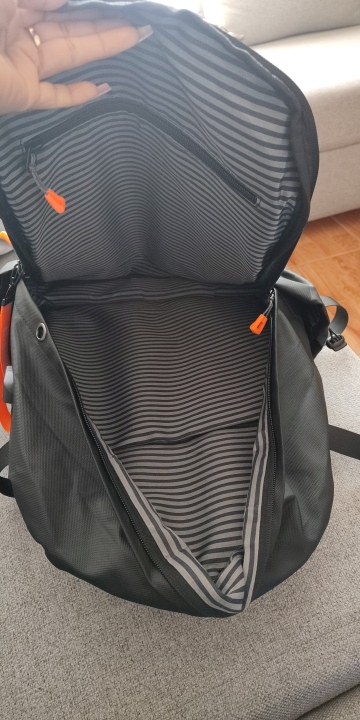 Es una pequeña mochila hecha de tela impermeable (probé y realmente lo es, pero tenga cuidado ya que el agua puede entrar dependiendo de la intensidad de la lluvia). Tiene múltiples bolsillos, acolchado interno y la calidad general de la construcción es buena. Una cosa que noté es que los costos son bastante simples y frágiles, así que no compre si quiere llevar ladrillo adentro. Por el precio, es muy justo.