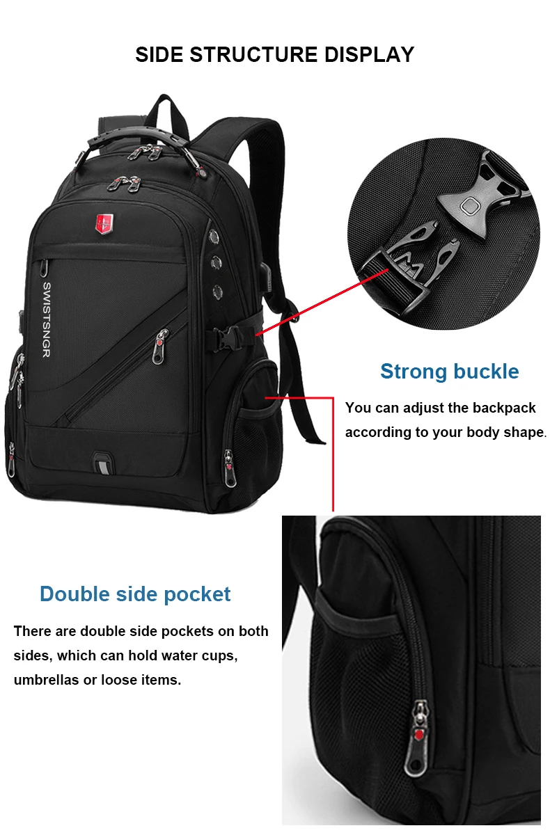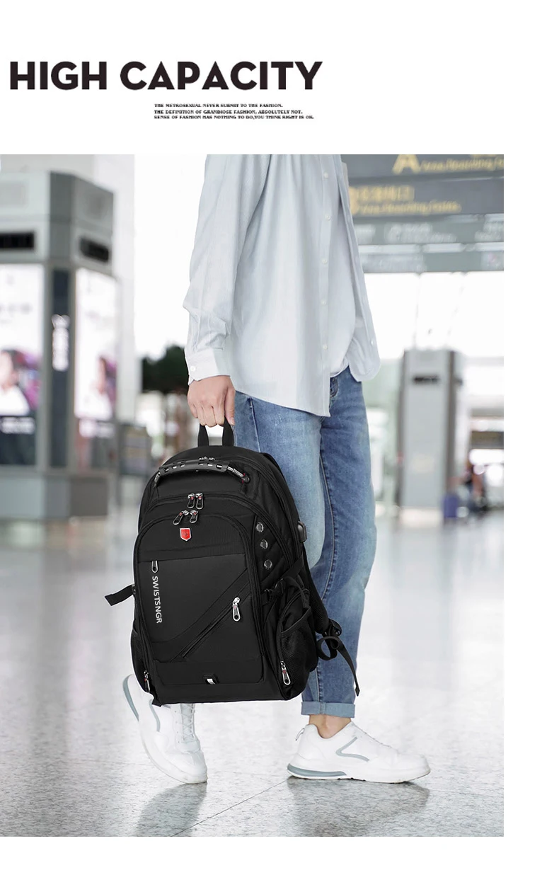 ✨Material seleccionado de alta calidad a prueba de salpicaduras e impermeable, doble cremallera antirrobo, candado sin robo, gran capacidad, puerto de carga USB externo, solo puerto USB, Banco de energía no incluido