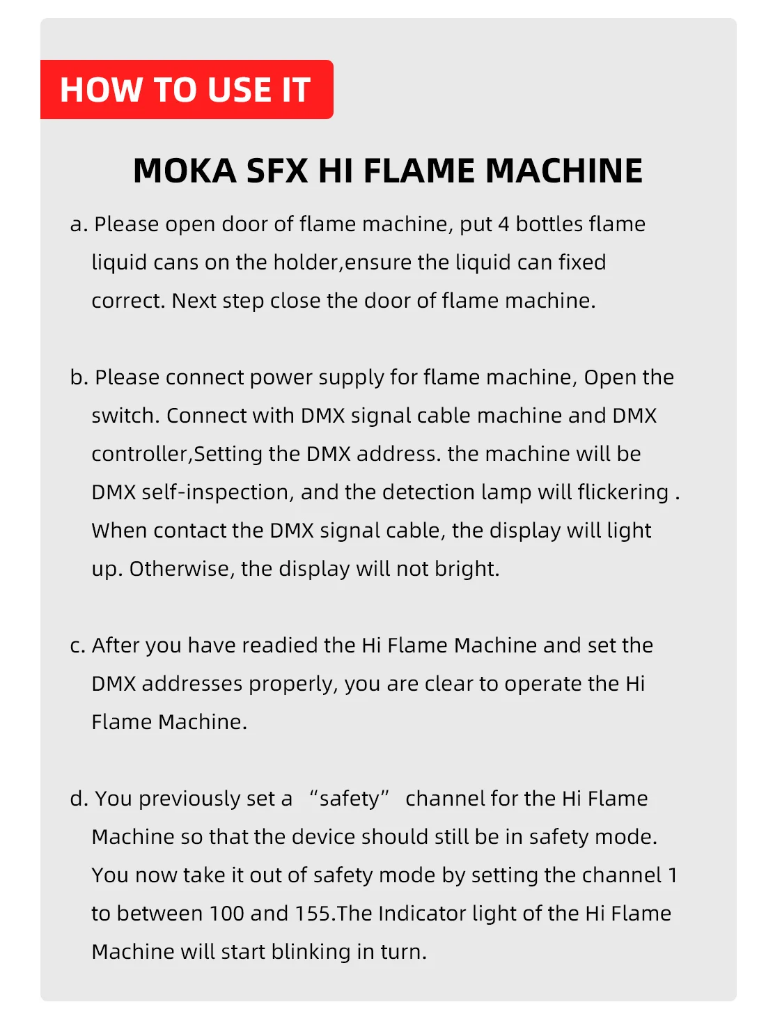 MOKA SFX Máquina de Fuego de DJ de Encendido de Alta Calidad, Máquina de Llama de Escenario, Control DMX LCD, Máquina de Fuego de Efecto de Espray en 2019. En comparación con el proyector de llama anterior, lo actualizamos desde la apariencia del producto, la configuración de seguridad y las piezas. El proyector de llama MOKA SFX es perfecto para varias actuaciones de televisión, conciertos y fiestas de espectáculos de discoteca al aire libre/interior de tamaño grande o mediano.