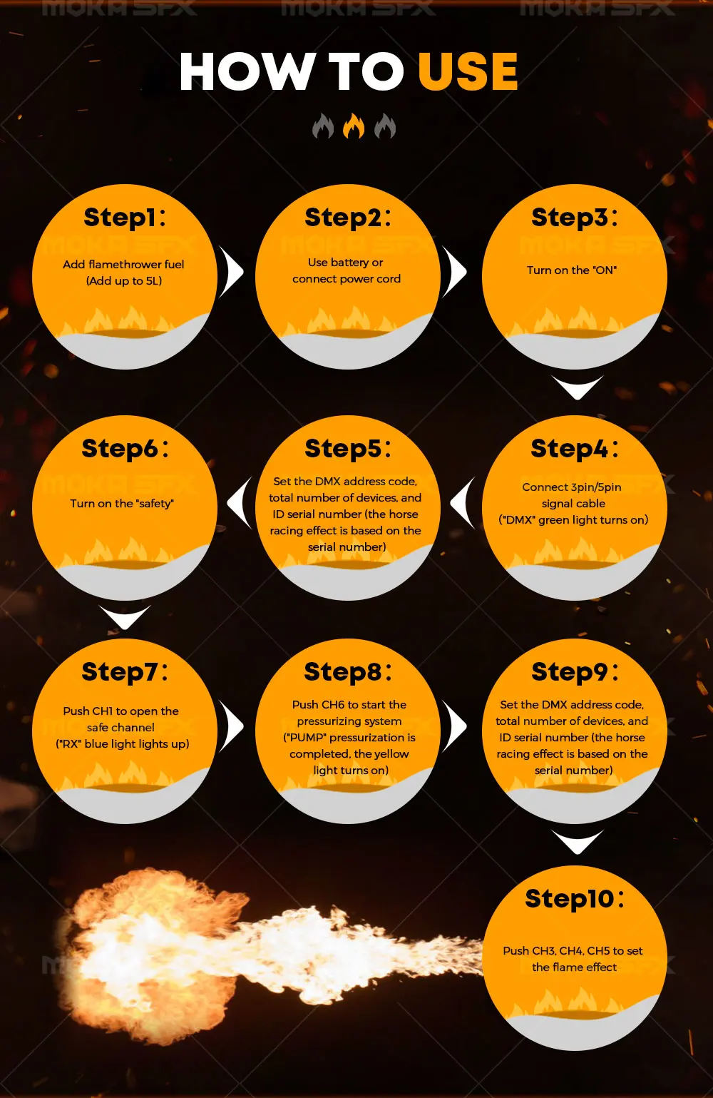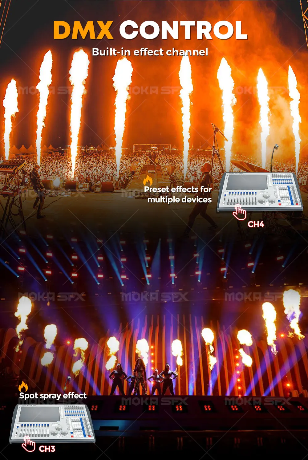 ¿Está buscando una manera de encender su escenario al máximo? Luego prueba MOKA SYCN FLAMER, disparan llamas hasta 8-10 metros en el cielo con un chorro increíble para¡Elevando su rendimiento a un nuevo nivel!
