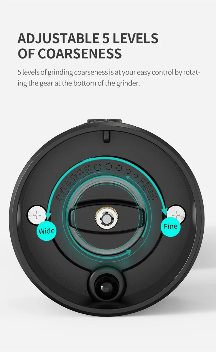• Luces LED ajustables :Equipado con luces LED, este molinillo permite ajustar la gruosidad de la mezcla para adaptarse a tus necesidades individuales.