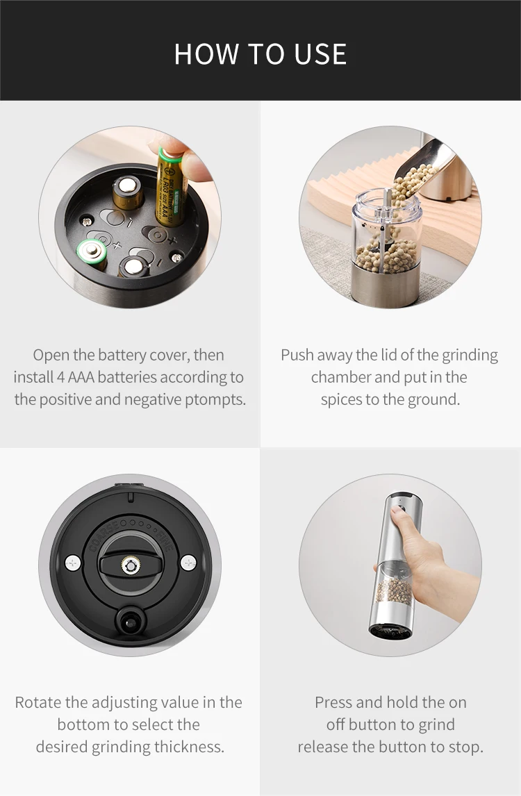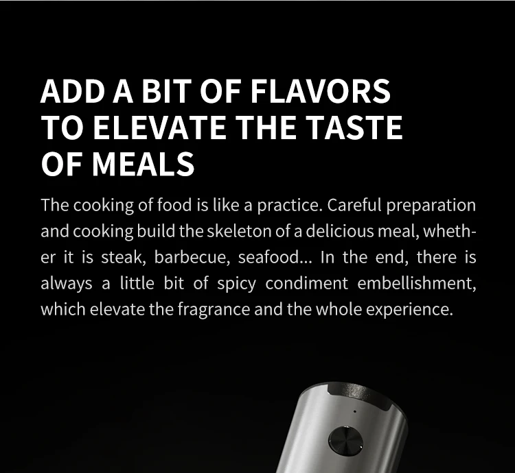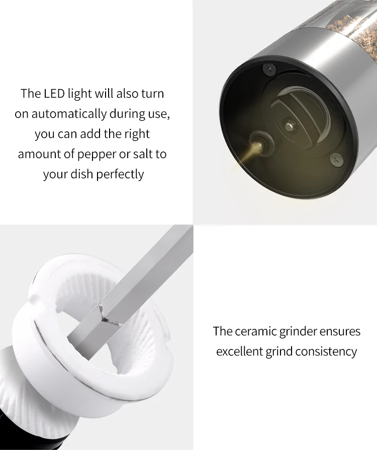 • Herramientas de cocina :Un utensilio esencial para cualquier cocina, este molinillo eléctrico automático puede manejar una variedad de condimentos, desde pimienta hasta sal marina.