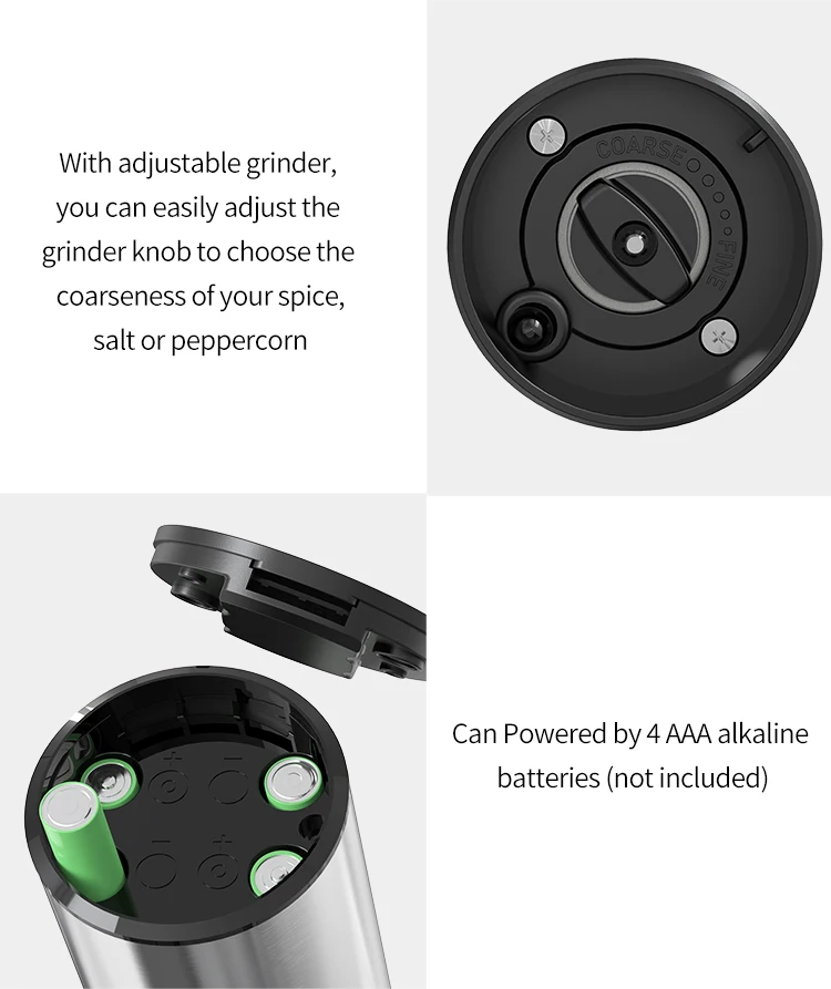 • Millonario eléctrico automático :Este molinillo de pimienta y sal es eléctrico automático, proporcionando una mezcla eficiente y sin esfuerzo para tus alimentos.