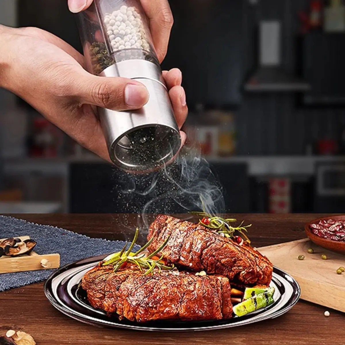 - 🔹 Función 2 en 1: Un solo molinillo para pimienta y sal, práctico y ahorrador de espacio.