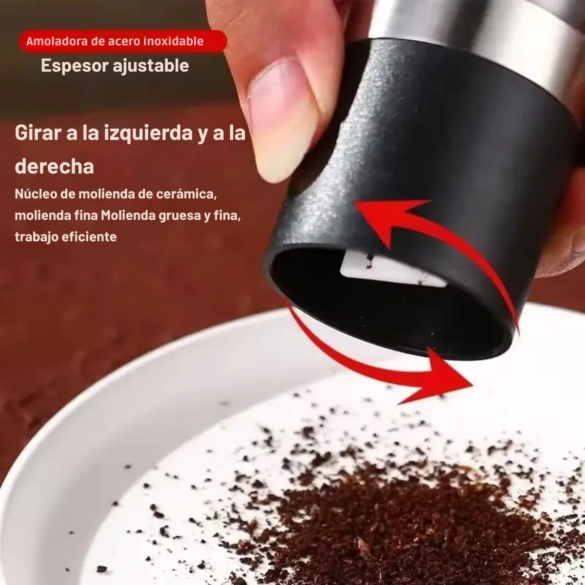 - 🔹 Doble cabezal ajustable: Controla la finura de la molienda según tu preferencia.
