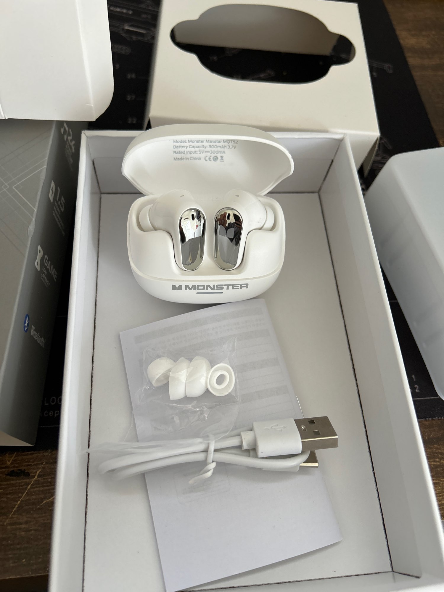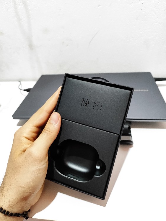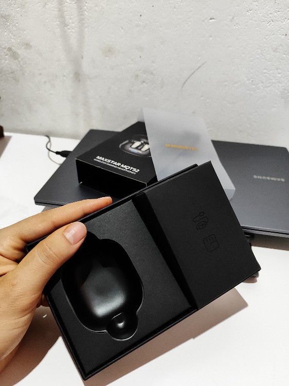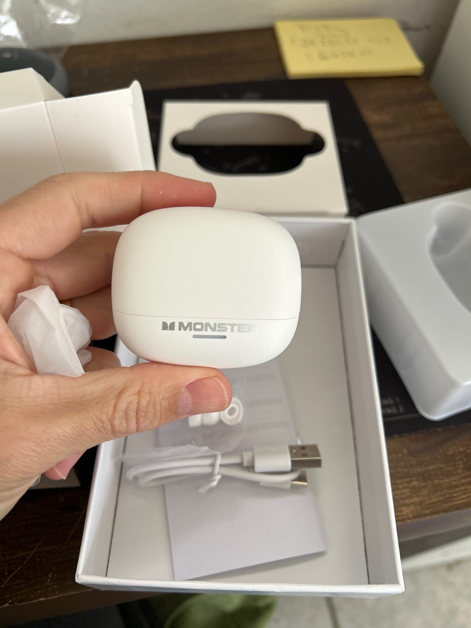 Primero, llega en la caja tal cual, muy profesional de verdad. Puedo asegurarle que es muy bueno, incluso a su capacidad máxima no pierde calidad. Excelentes bajos y muy buenos agudos (altas frecuencias). Bien equilibrado. Al abrirlo, se sentirá como un pequeño cajón para sacar, muy bonito, con una protección de plástico duradero con detalles dorados que son muy elegantes. Luego, puedes sacar las cajas que vienen con gomas de repuesto, el cargador y el manual. Desafortunadamente, no tiene nuestro idioma brasileño, pero tiene varios idiomas. Y el auricular viene en este pequeño orificio, ya lo saqué y se está cargando. Es bastante pequeño, de ahí la potencia, pero se ve elegante en la persona. Muy cómodos y no se sueltan fácilmente; dependiendo de la oreja, simplemente cambia los auriculares. De todos modos. Perfecto, calidad, cuidado y todo lo demás. Puedes comprar. ✅ 🙌
