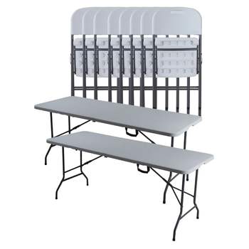 Combo 2 Mesas Plegables 180 cm y 8 Sillas Plegables Blancas para Fiestas, Eventos, Jardín, posadas