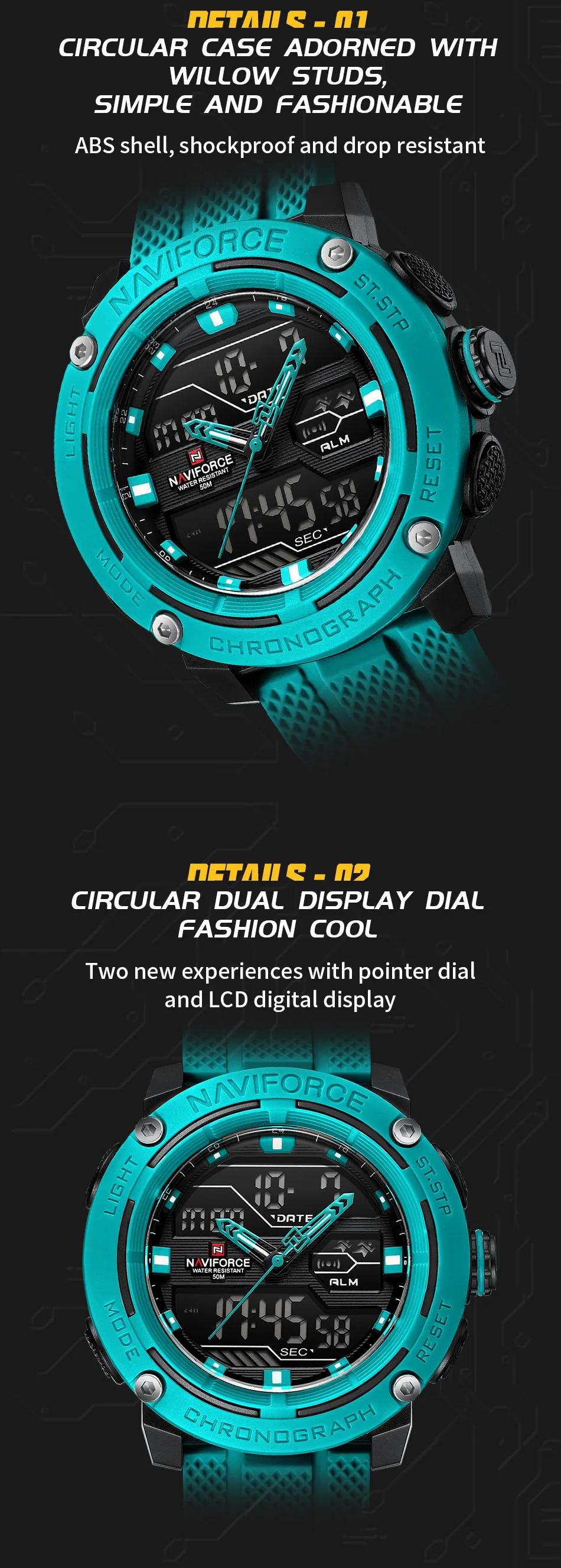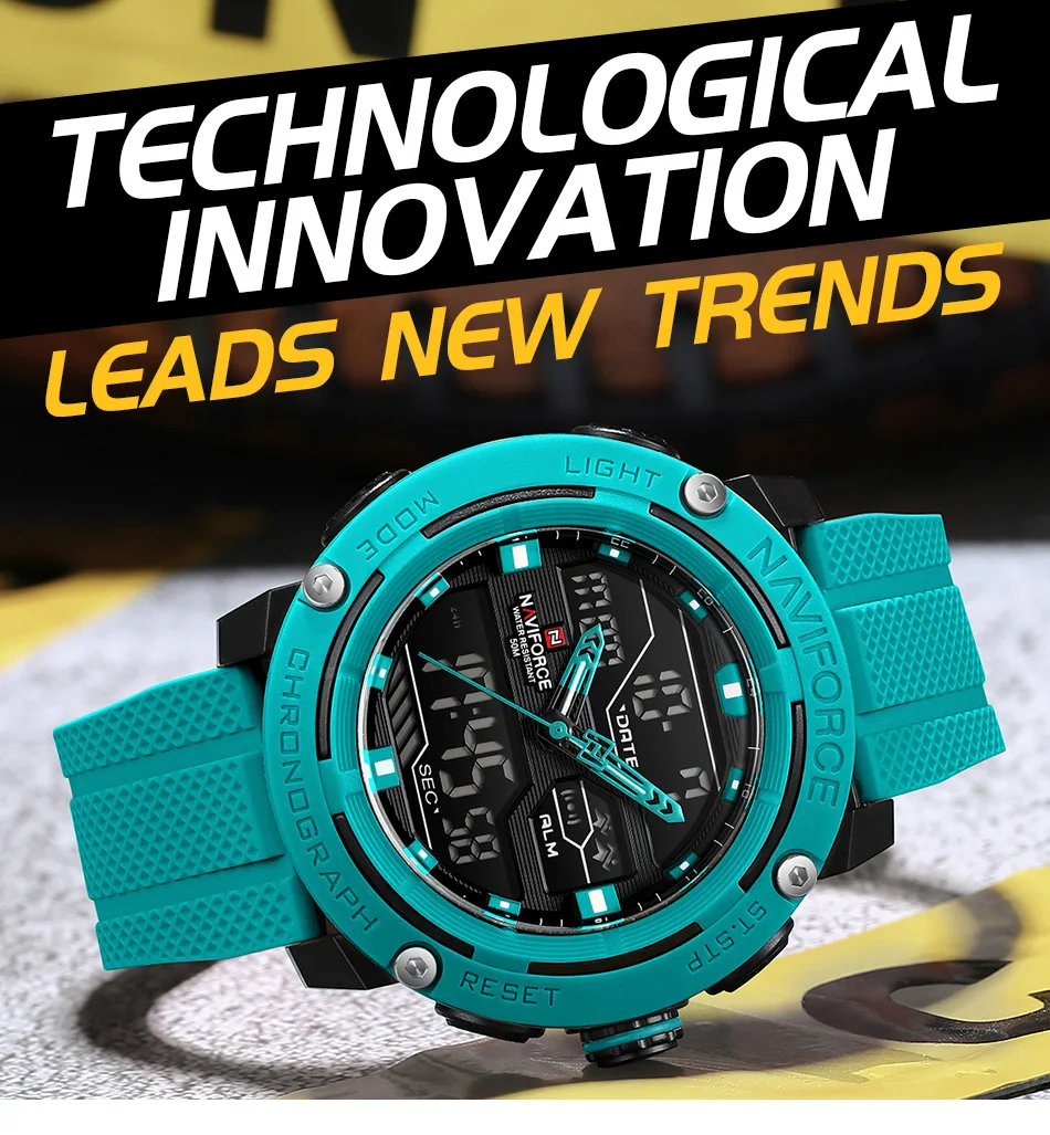 NAVIFORCE relojes deportivos para hombre 5ATM resistente al agua reloj de pulsera de cuarzo con pantalla Dual alarma fecha semana reloj hombre correa de silicona 2025