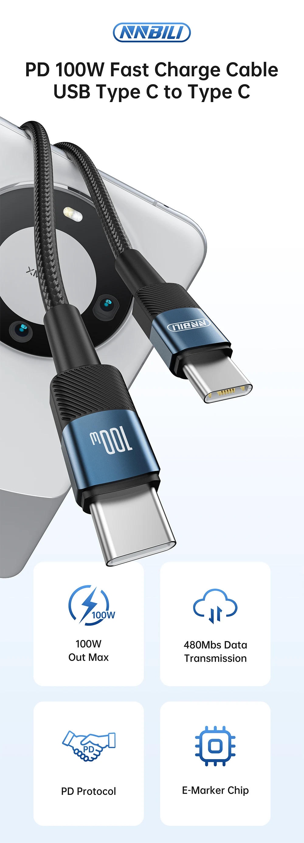 • Conector tipo C:Conecte sus dispositivos sin problemas con el conector tipo C en ambos extremos.