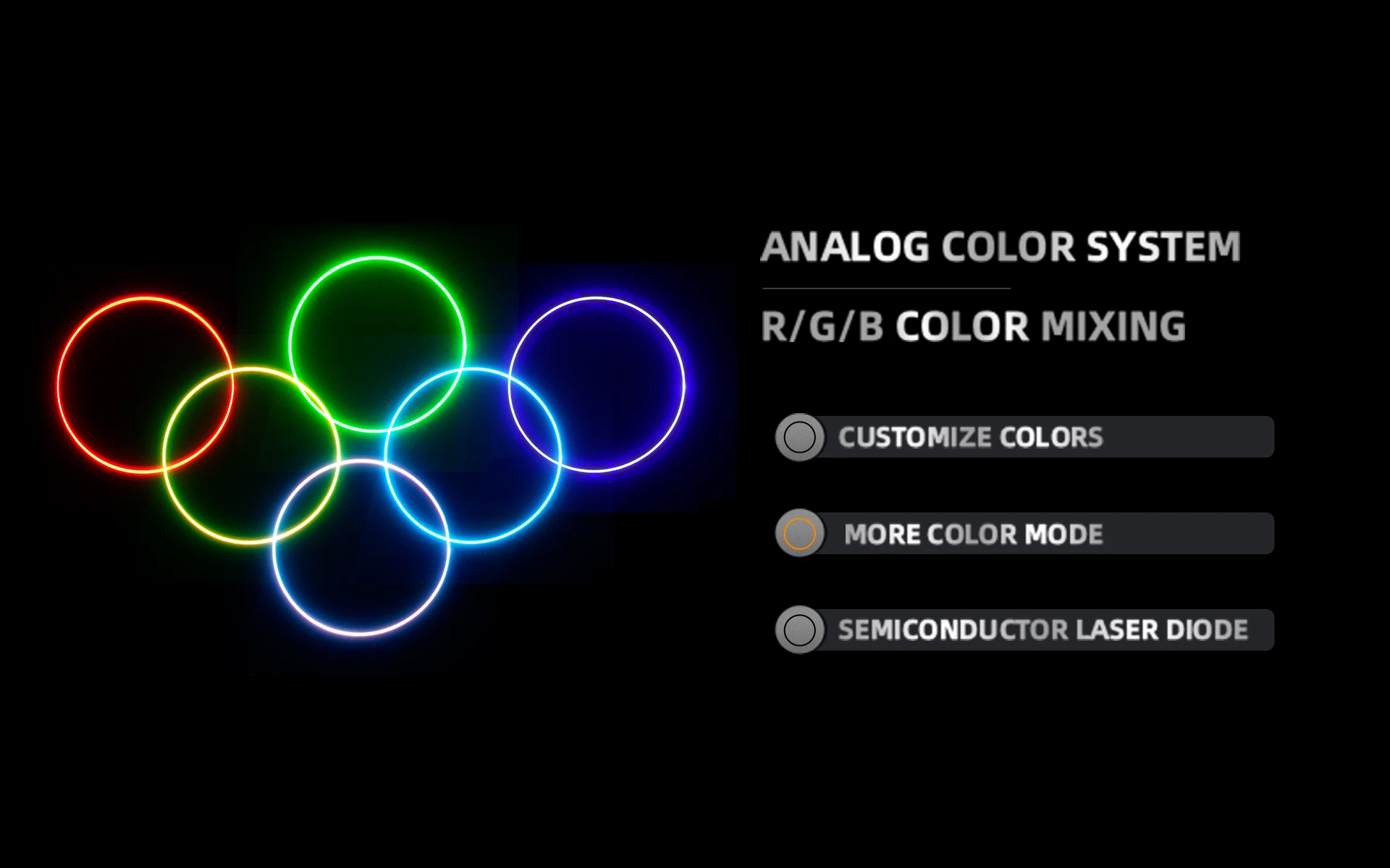 Utilizando una fuente de luz de diodo láser semiconductor, el láser analógico a todo color estándar utiliza tres colores primarios: rojo, verde y azul.