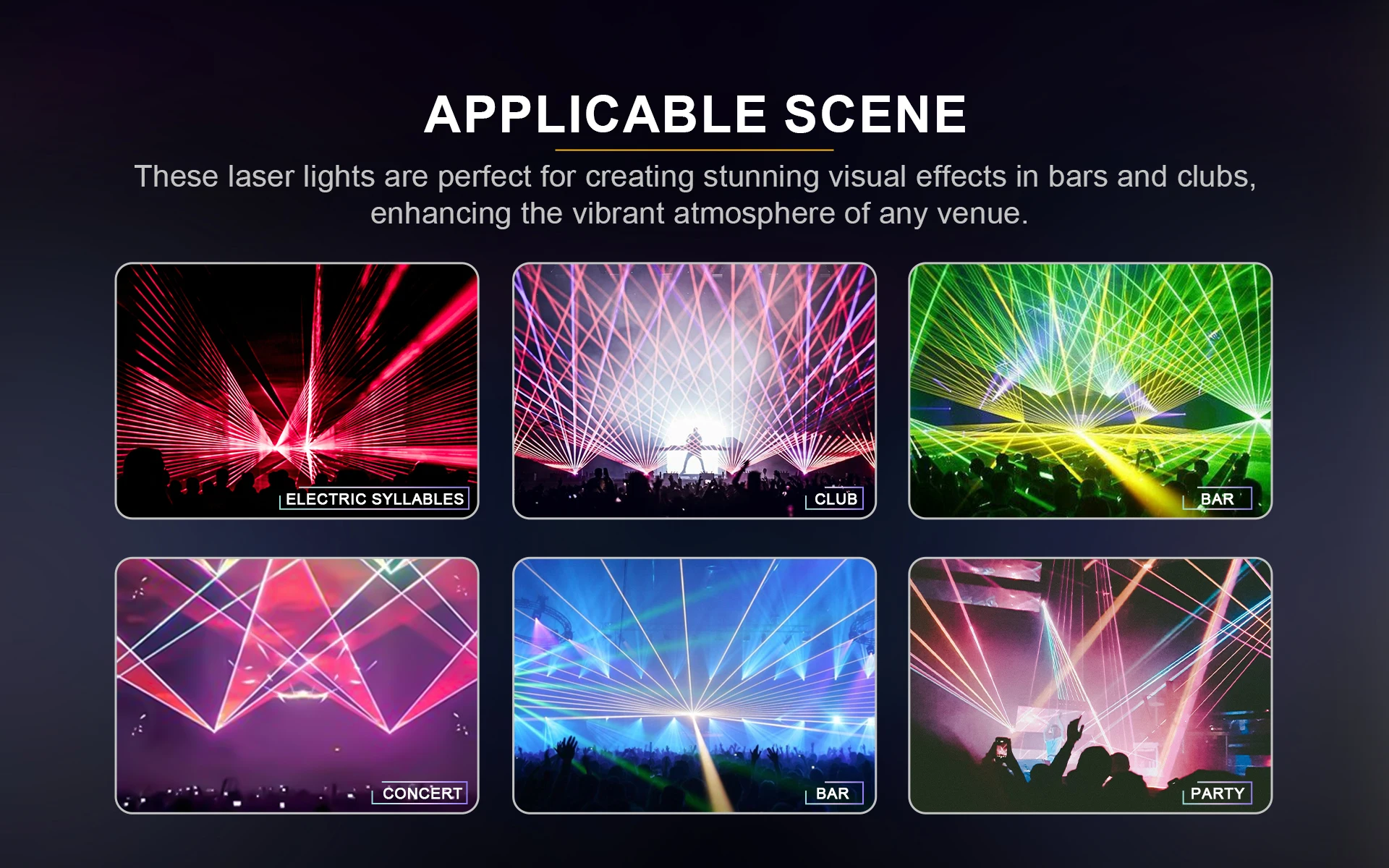 Ya sea en actuaciones, exposiciones o eventos a gran escala, la aplicación de la tecnología láser brindará un impacto visual incomparable.