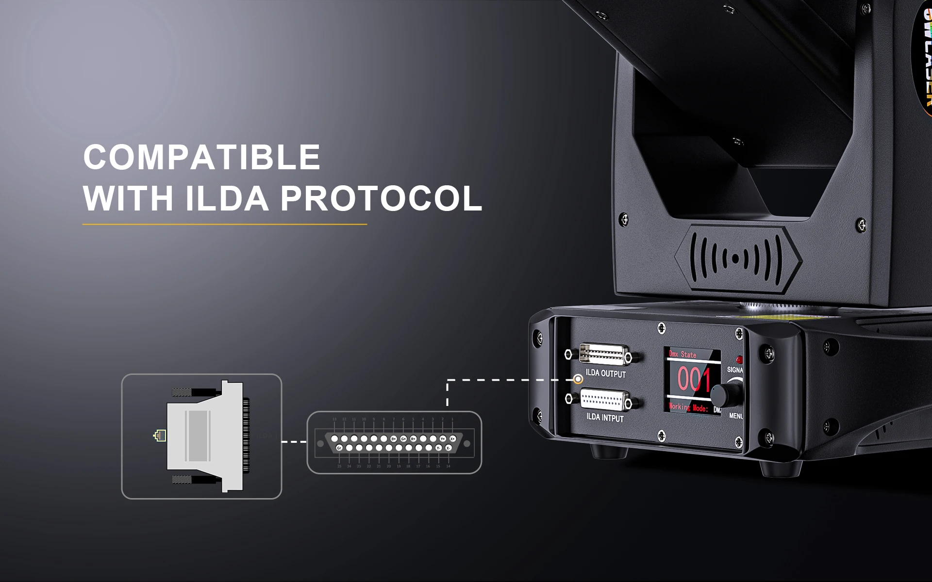 Admite protocolo de señal ILDA para control de entrada de dispositivos, como software de control láser profesional compatible con Beyond QuickShow FB3/FB4.