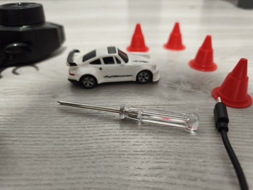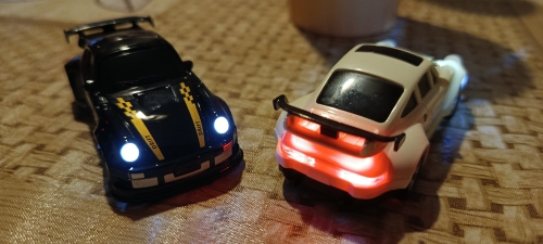 Una máquina ultrarrápida del tamaño de un Hot Wheels. Se necesitará más de una sesión para dominarla correctamente. El coche se sacó del paquete con las luces encendidas durante aproximadamente media hora, y la batería no se agotó. El niño está en un estado de entusiasmo, arruinando el suelo de parqué.