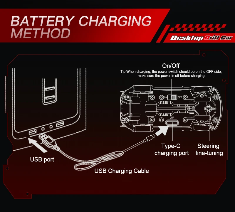 El manejo hacer drift tiene mucho giro que es lo guapo ,tiene dos velocidades una lenta y otra más rápida y las luces las puedes apagar o encender ,la batería ,no he calculado lo que dura pero por lo que he leído de otros dura 30 minutos y estoy seguro si se le dá caña ,para cargarlo puedes tardar poco ,así que lo recomiendo para entretenerte un rato.