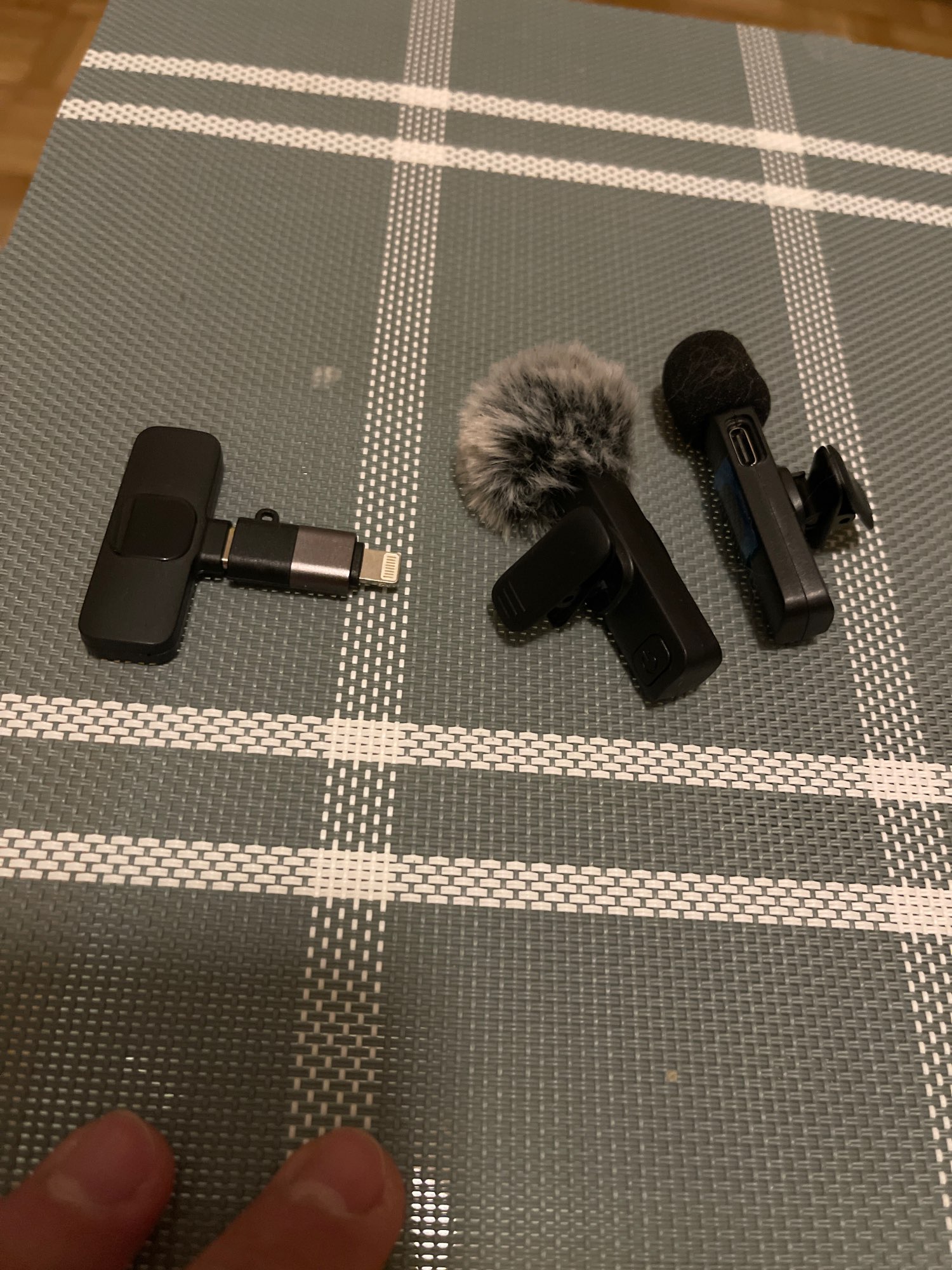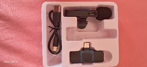 1 micrófono, tal como la foto. El audio es bastante bueno