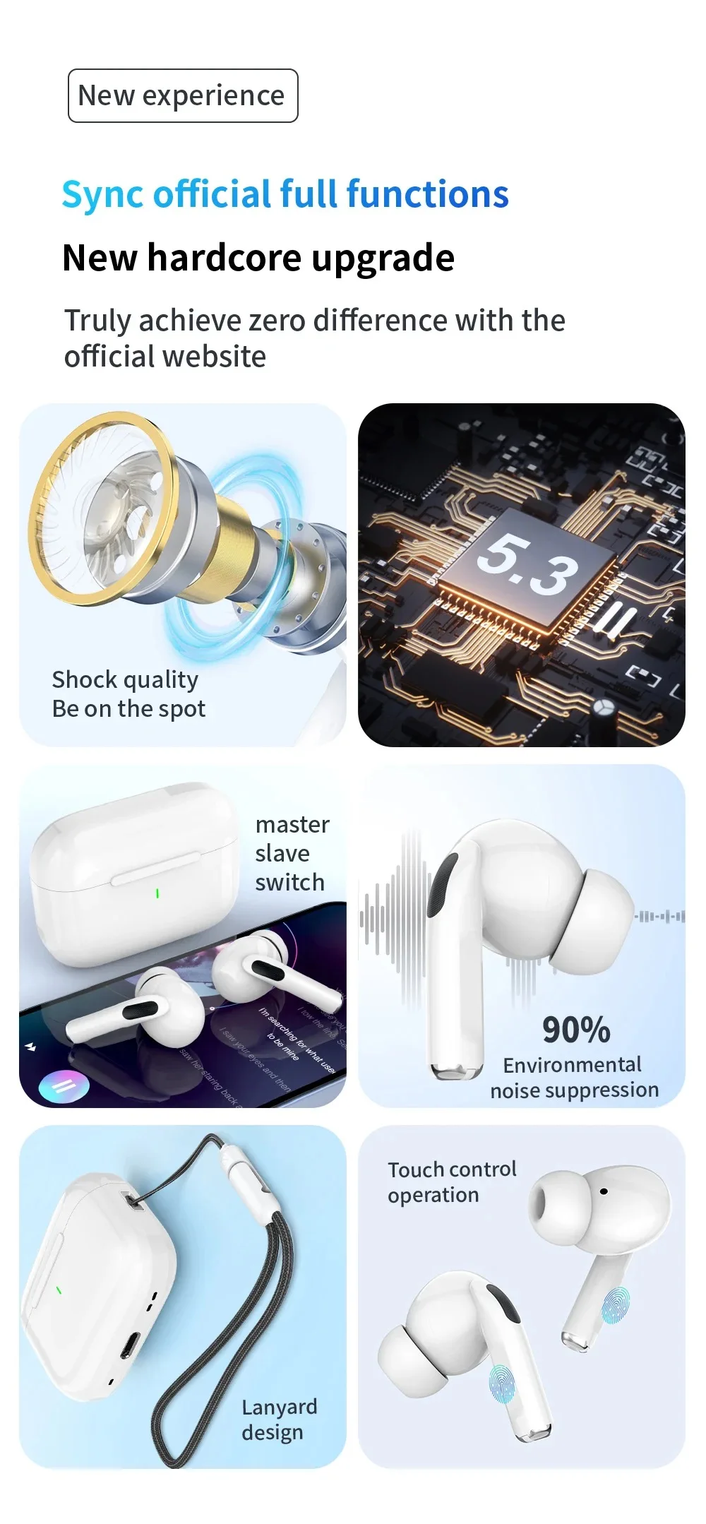 ¡Increíble! El sonido es bueno, los graves son excelentes. La batería es muy duradera, he estado escuchando música durante 3 horas y el sonido nunca se interrumpe; además, siguen funcionando perfectamente. Creo que los auriculares se pueden usar durante al menos 4 horas. La misma animación que el original, tamaño 1:1, puede cambiar el nombre de bluetooth que desee. La música se pausa automáticamente cuando se retiran los auriculares de los oídos. Además, puedes usar MagSafe para cargarlos. ¡La velocidad de carga es muy rápida y no se calientan, genial! ¡Gracias al vendedor, me encantan muchísimo!