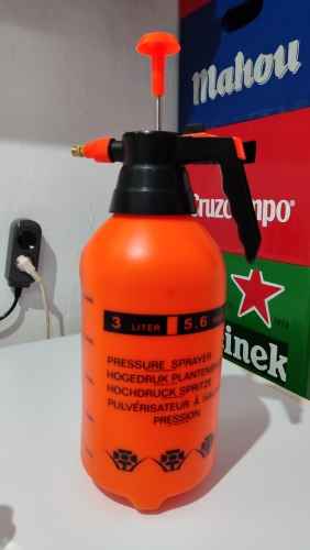 Bonita botella pulverizadora. Lo usé hoy en mis bandejas para plántulas. No es tan fina como una botella de spray manual, pero aún así funciona para mis propósitos. Llegó ligeramente abollado. Un mejor embalaje habría sido agradable. Envío rápido. Preciso tomarlo con calma la cantidad de bombas hasta que obtenga una comprensión de la cantidad de presión que es delgada que se puede manejar en una lata de plástico.