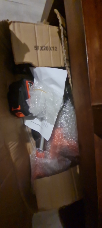 Ordenado en lunes, llegó el próximo lunes, muy bueno Bien embalado y protegido para el transporte🚛 Fuera de la Caja se ve bien, hecho sólido, todas las partes están aquí Baterías bien embaladas y protegidas adicionalmente, completamente cargadas ¡La máquina funciona! Intentará en hierba más tarde Estoy satisfecho Recrecomendar