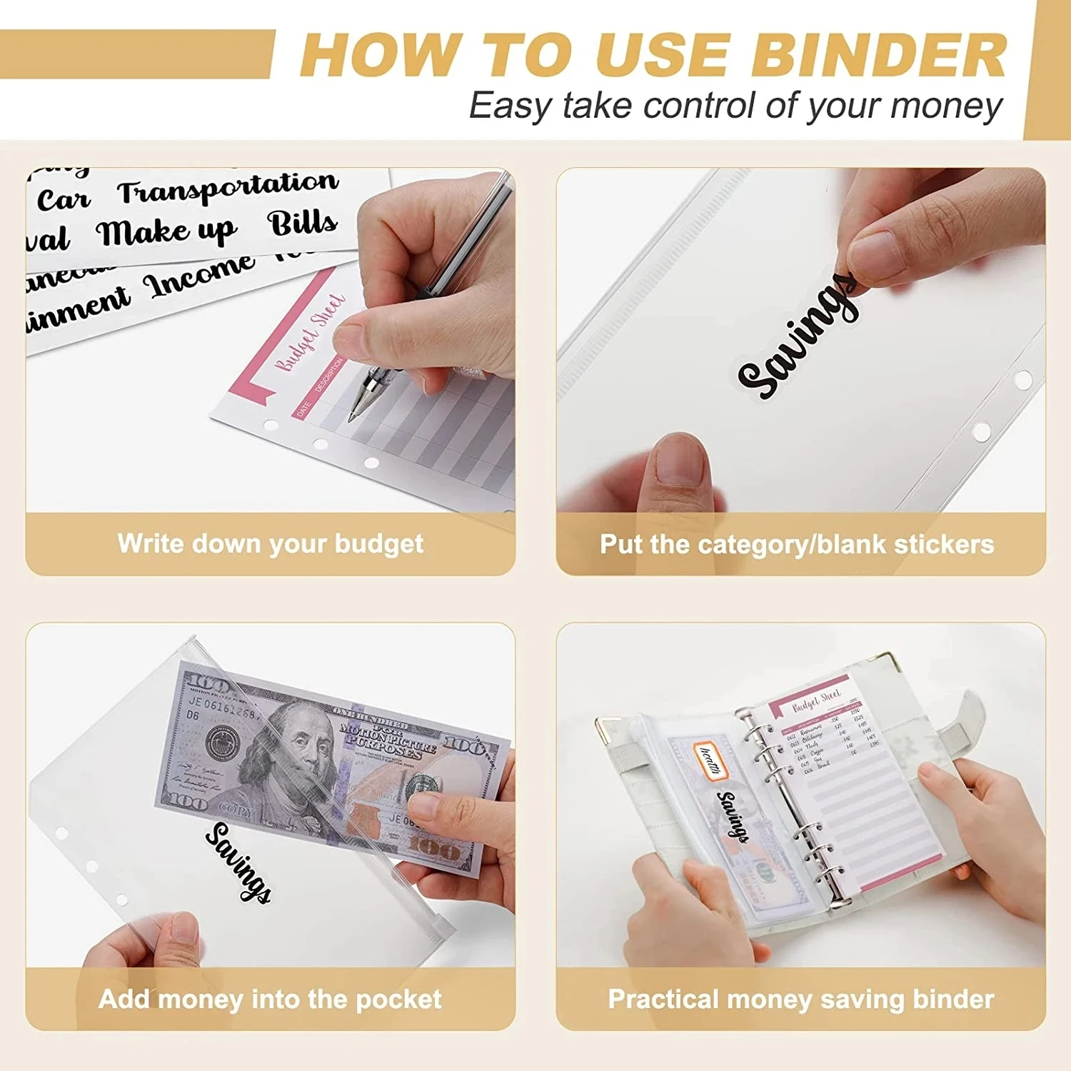 [Estructura simple] El planificador de presupuesto A6 está equipado con ranuras para tarjetas.Presione ambos extremos para abrirlo y agregar o eliminar bolsillos para carpetas.Luego presione el ciclo para apagarlo.El portalápices también puede fijar el bolígrafo en su lugar.La bolsa de clasificación hecha de material translúcido es claramente visible, lo que le permite identificar y encontrar rápida y fácilmente los artículos que necesita.