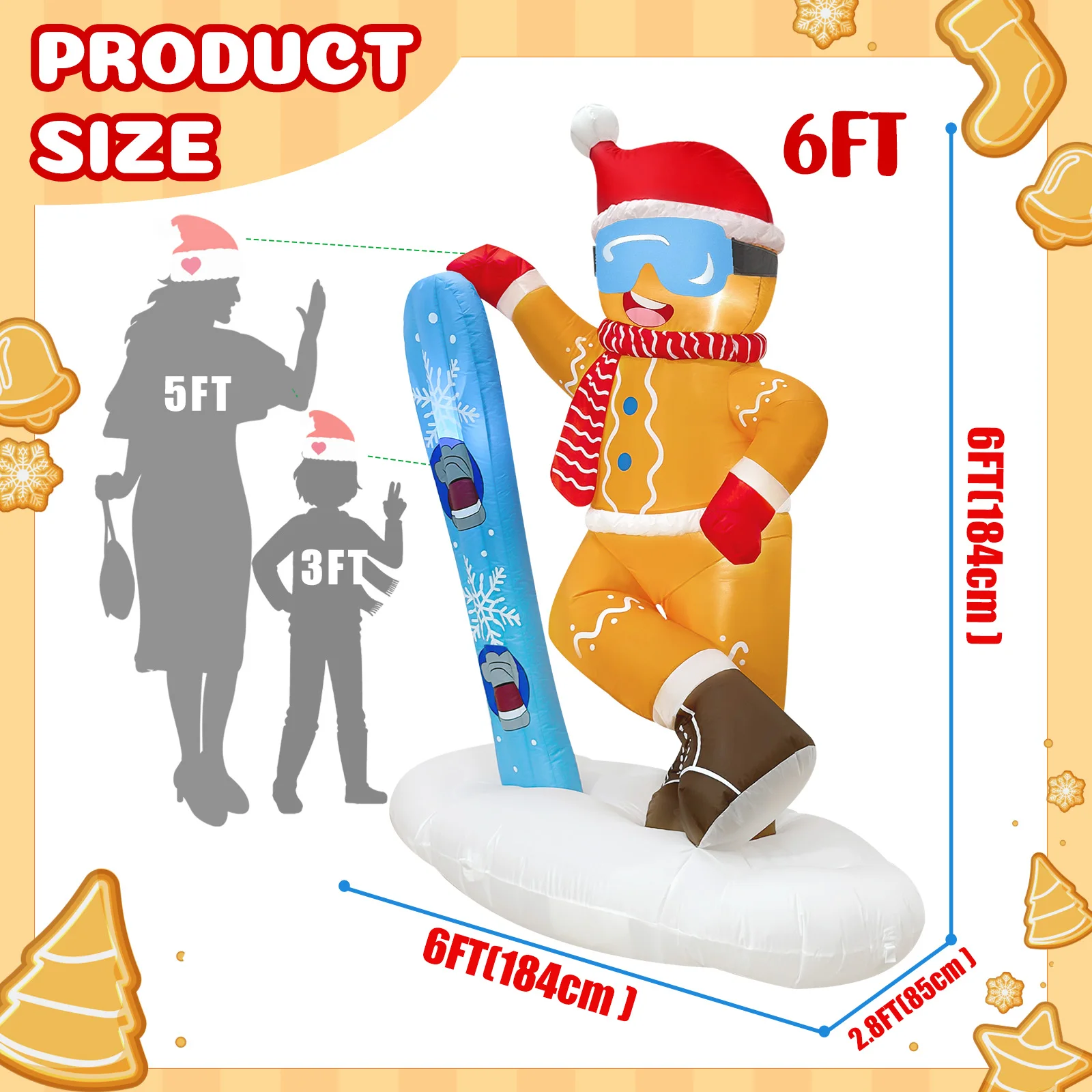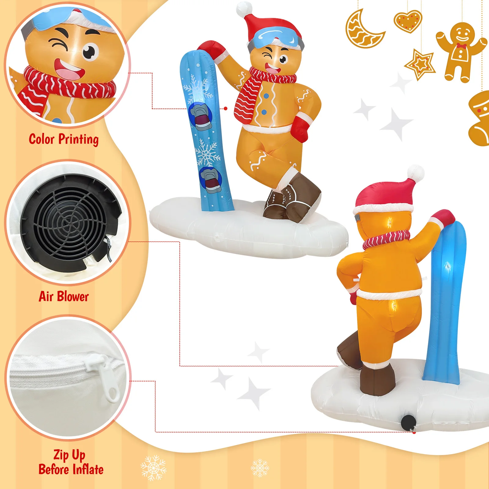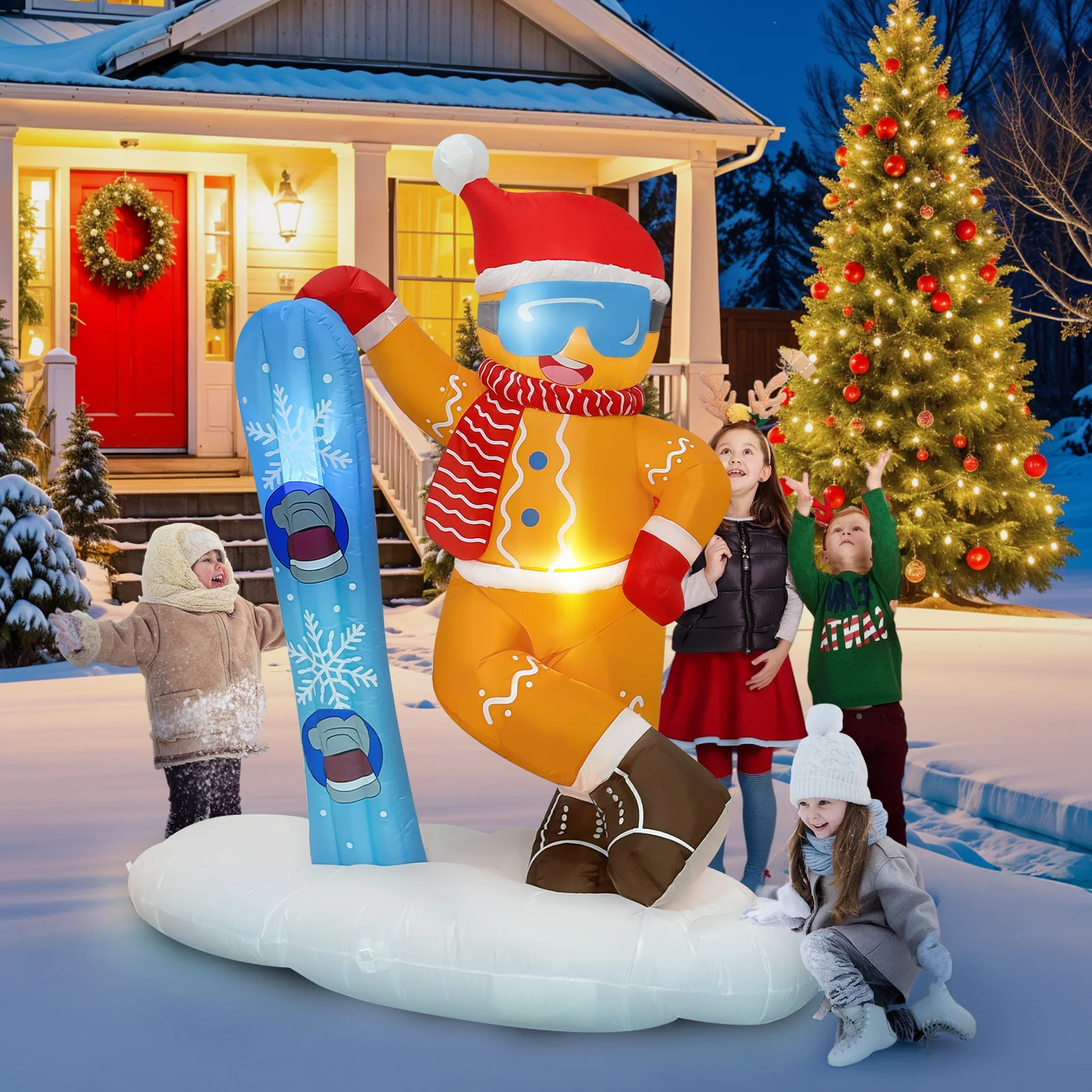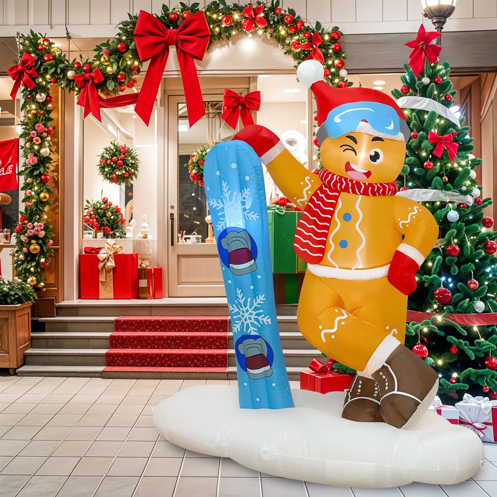 Nuestros inflables navideños para exteriores están hechos de tela de poliéster impermeable y gruesa, reforzados con costuras de alta calidad para resistir desgarros y decoloración, rigurosamente probados en cuanto a calidad y seguridad, y son perfectos para crear una exhibición de temporada alegre y confiable al aire libre.