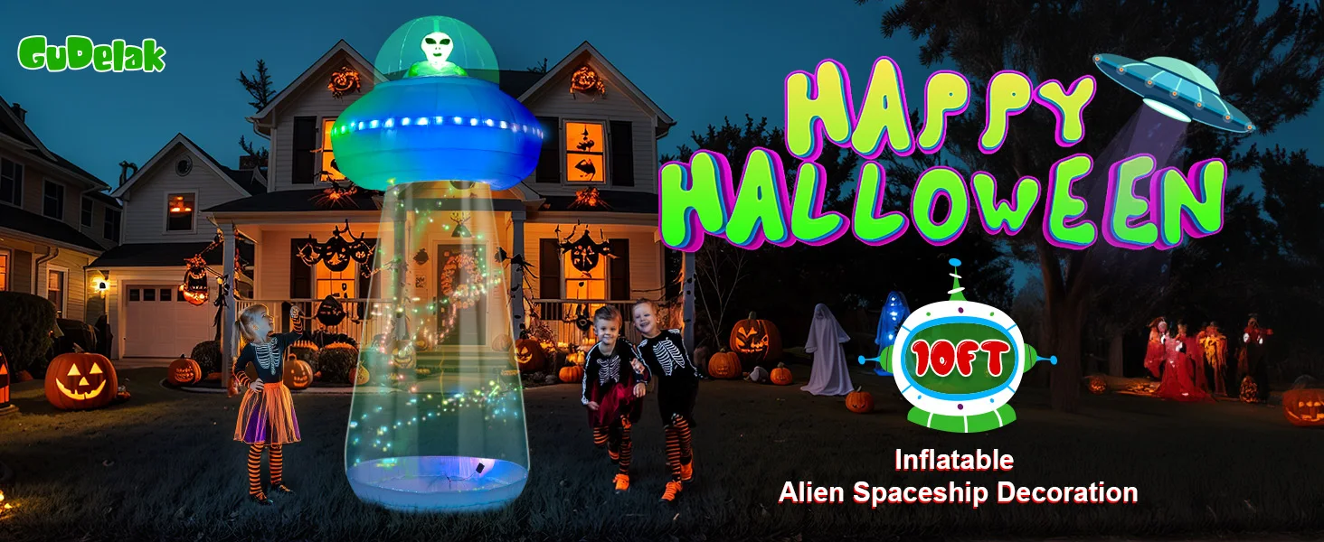 OurwarmHalloween decoraciones inflables para exteriores, OVNI inflable de 10 pies, decoración de Halloween para fiesta de vacaciones al aire libre, patio de césped de jardín