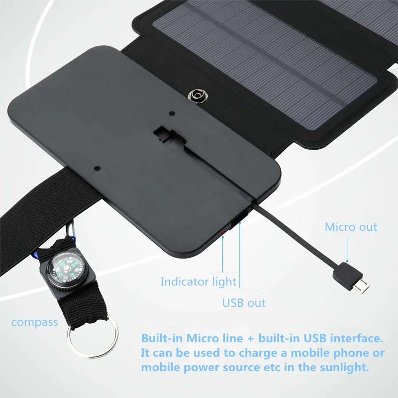 • Multifuncional:Este dispositivo no es solo un cargador solar, sino que también tiene una salida USB, lo que lo hace versátil y útil para diversas actividades al aire libre.