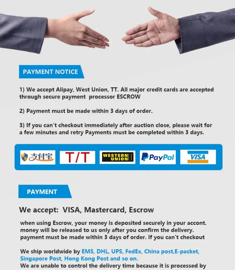 Los paquetes desde nuestro almacén en China se enviarán por ePacket o EMS, dependiendo del peso y tamaño del producto. Los paquetes enviados desde nuestro almacén en los Estados Unidos se envían a través de USPS.