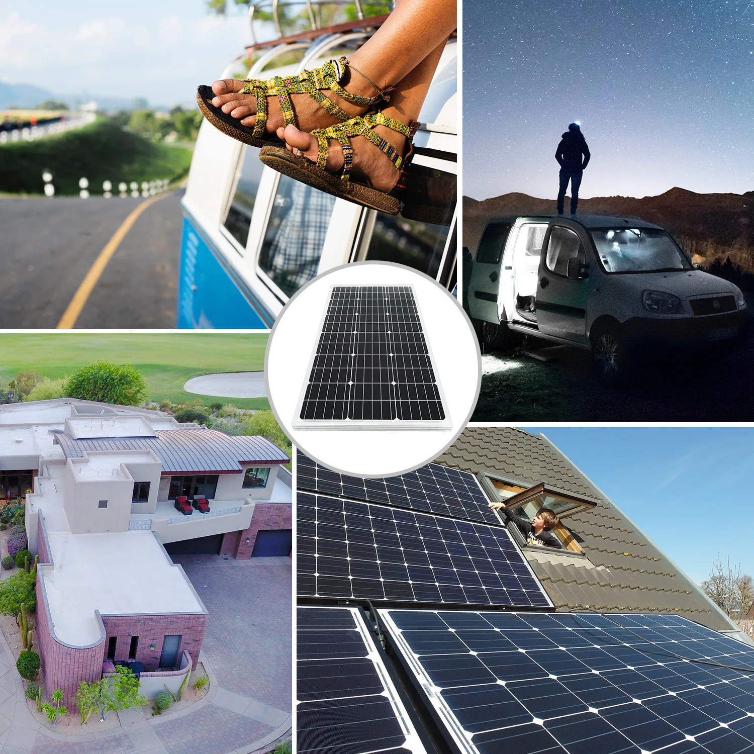 Ampliamente utilizado: bajo 4 horas de Luz solar completa, la capacidad de producción diaria es de 400wh/día. Es muy adecuado para autocaravanas, caravanas, océanos, vehículos de camping, scooters eléctricos, carritos de golf, ruedas eléctricas, motores de pesca, remolques de herramientas y fuentes de energía de respaldo para cobertizos pequeños.