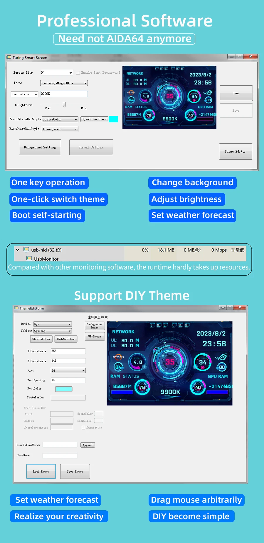 Conecte la mini pantalla secundaria a la computadora, luego inicie nuestro software personalizado, sin necesidad de aida64, sin otras configuraciones complicadas