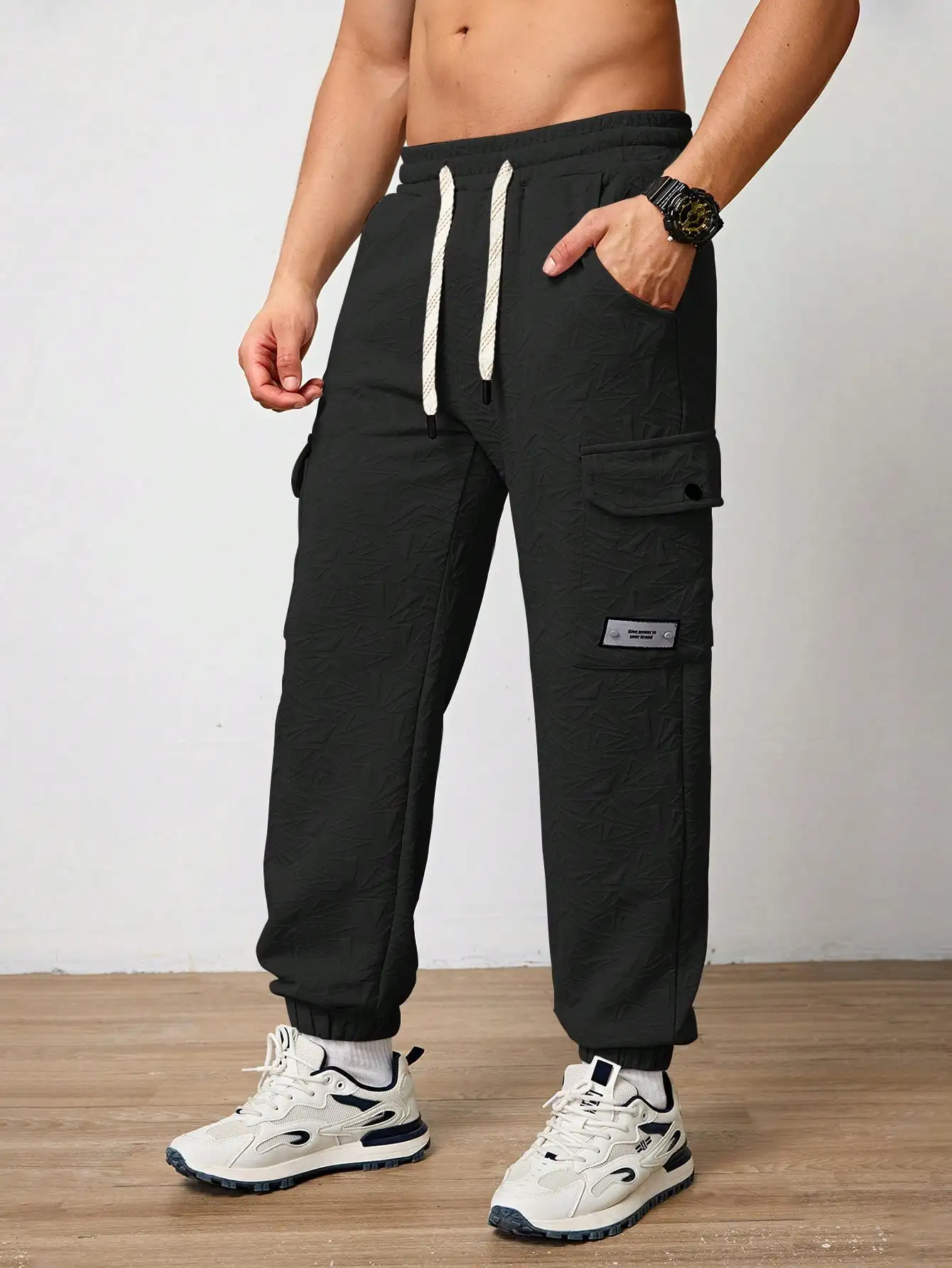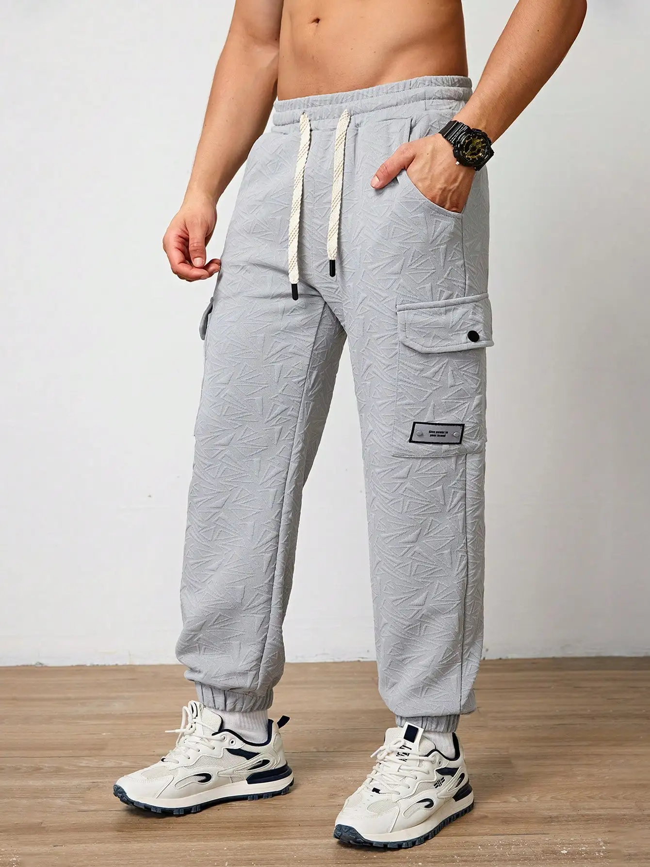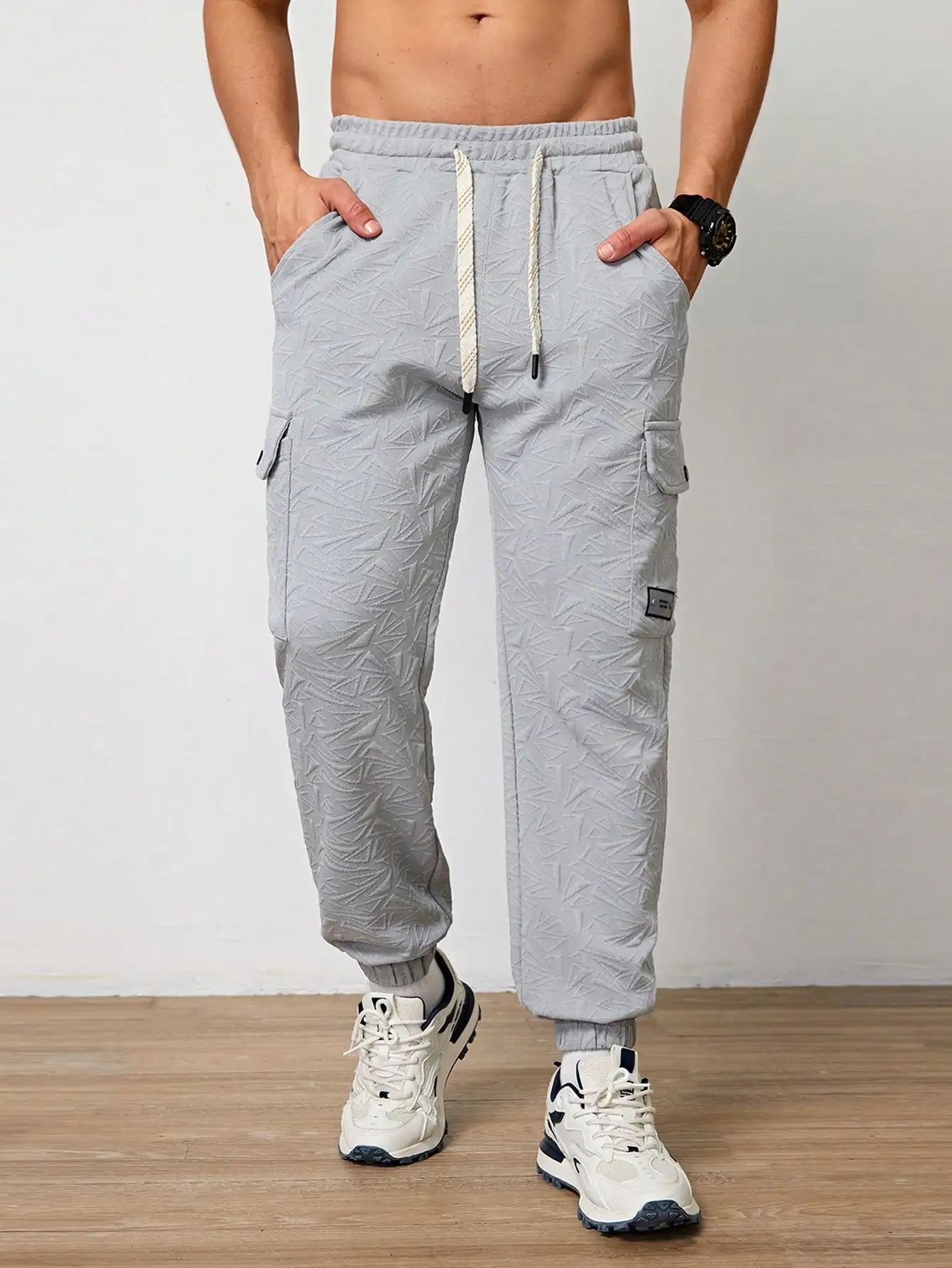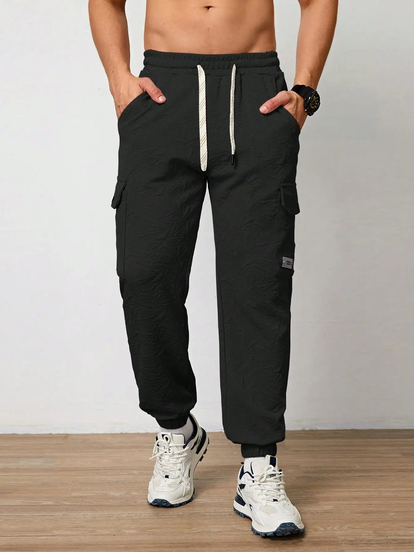 Pantalones Jogger Para Hombre De Textura Jacquard Liso,Pantslones Deportivos Casuales Con Cordón y Bolsillos Con Cremallera