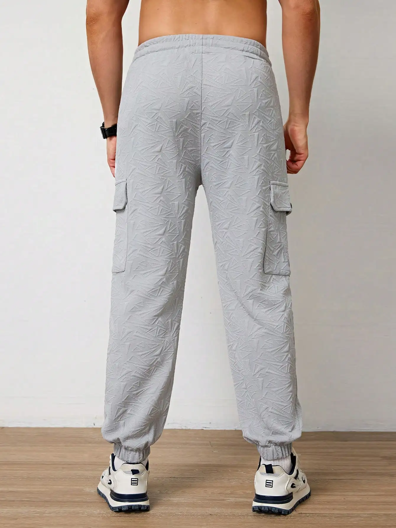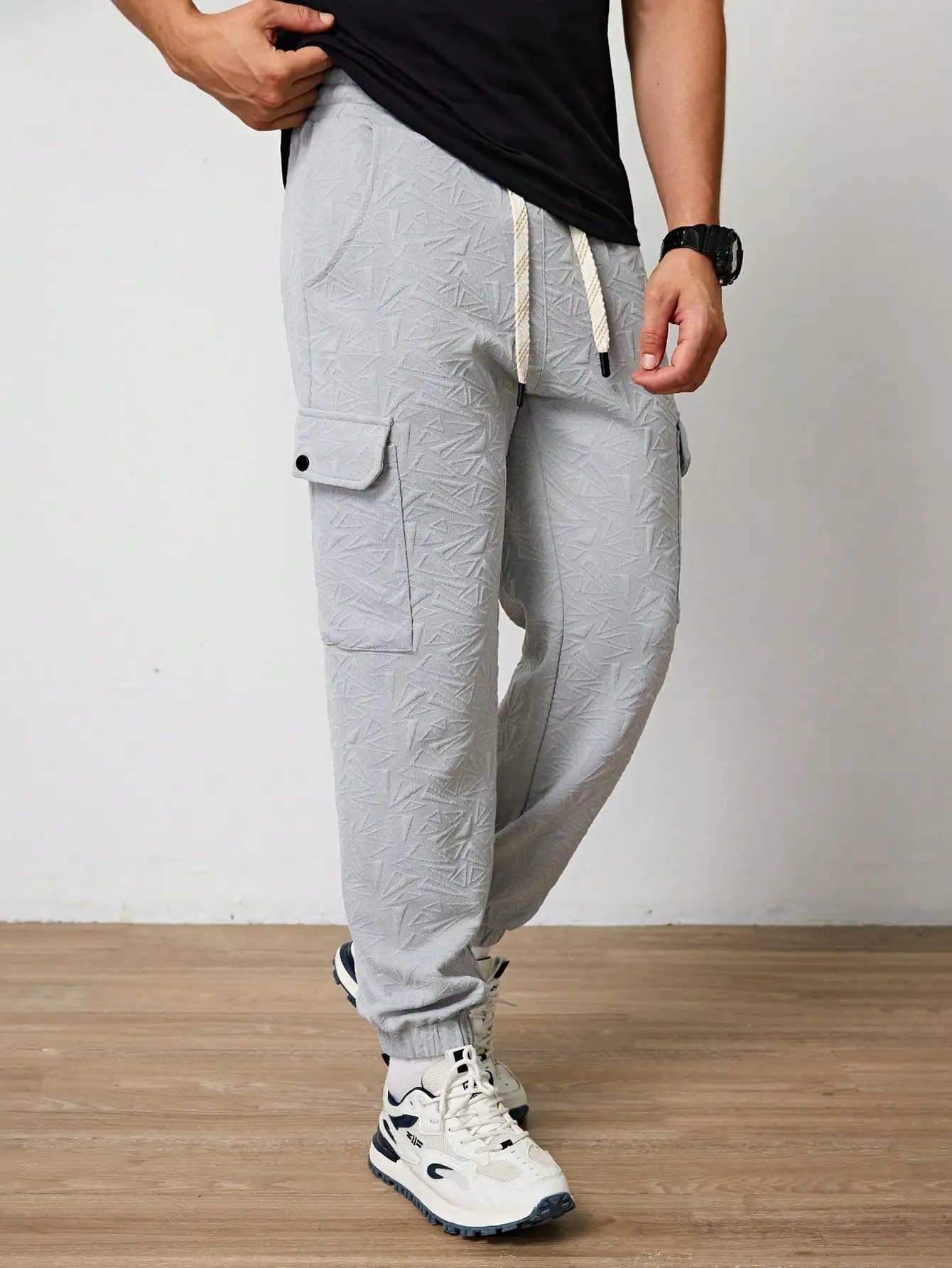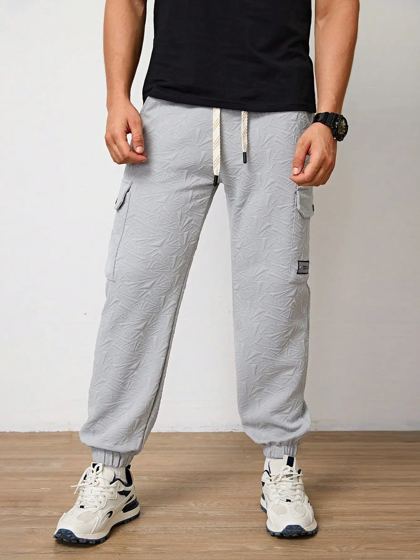 Pantalones Jogger Para Hombre De Textura Jacquard Liso,Pantslones Deportivos Casuales Con Cordón y Bolsillos Con Cremallera