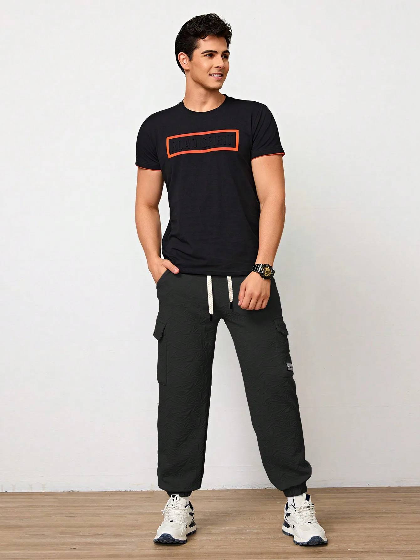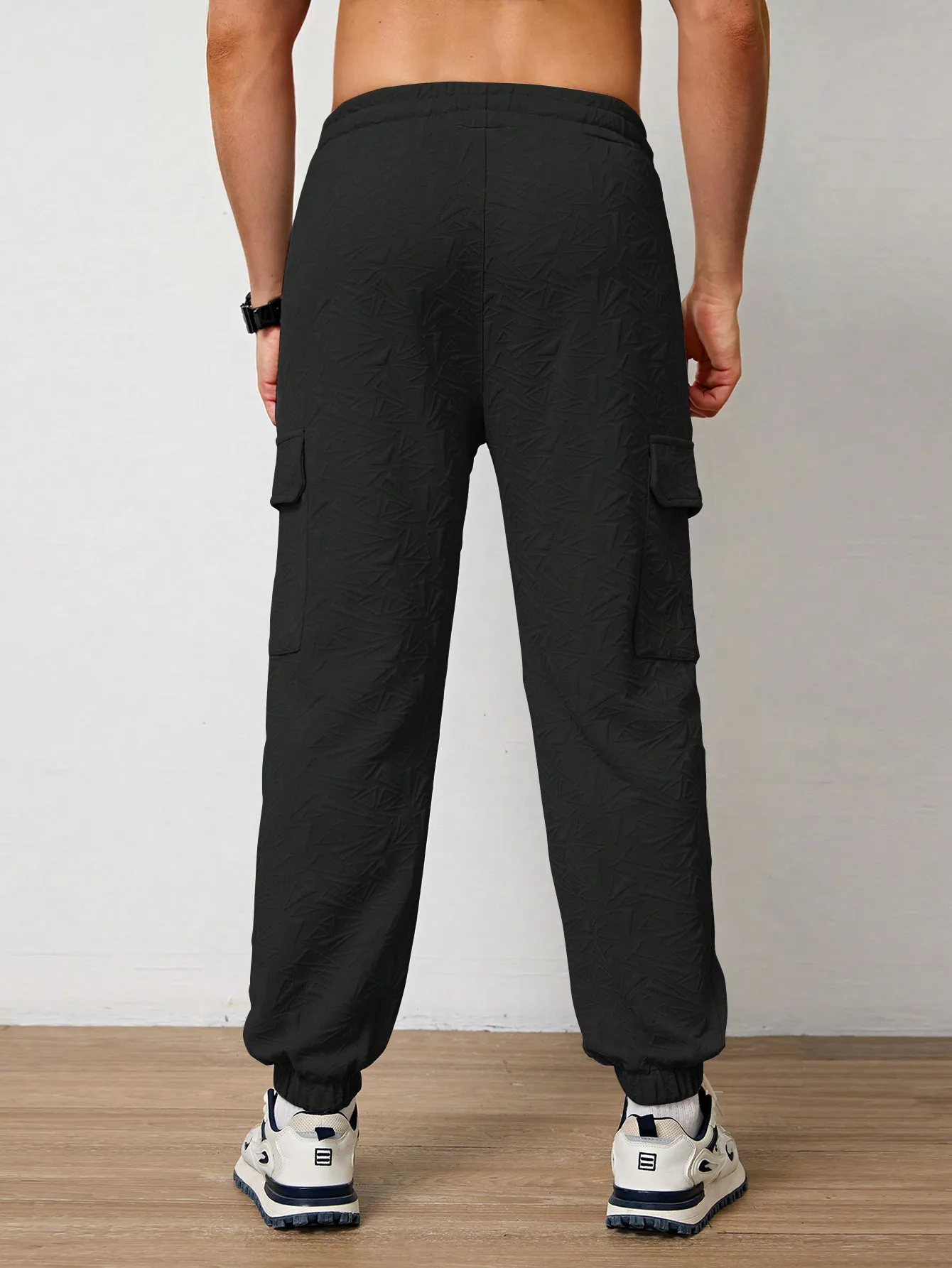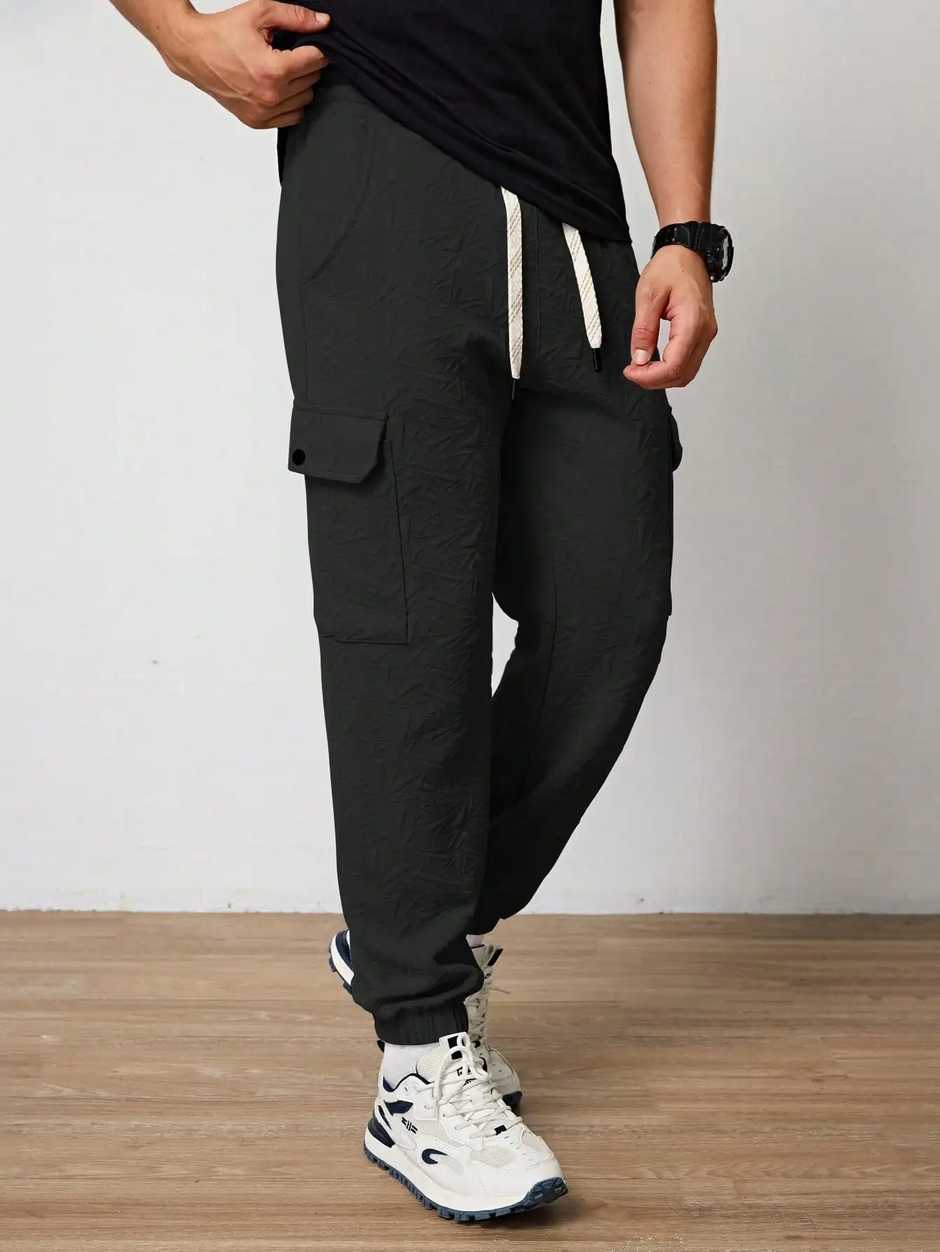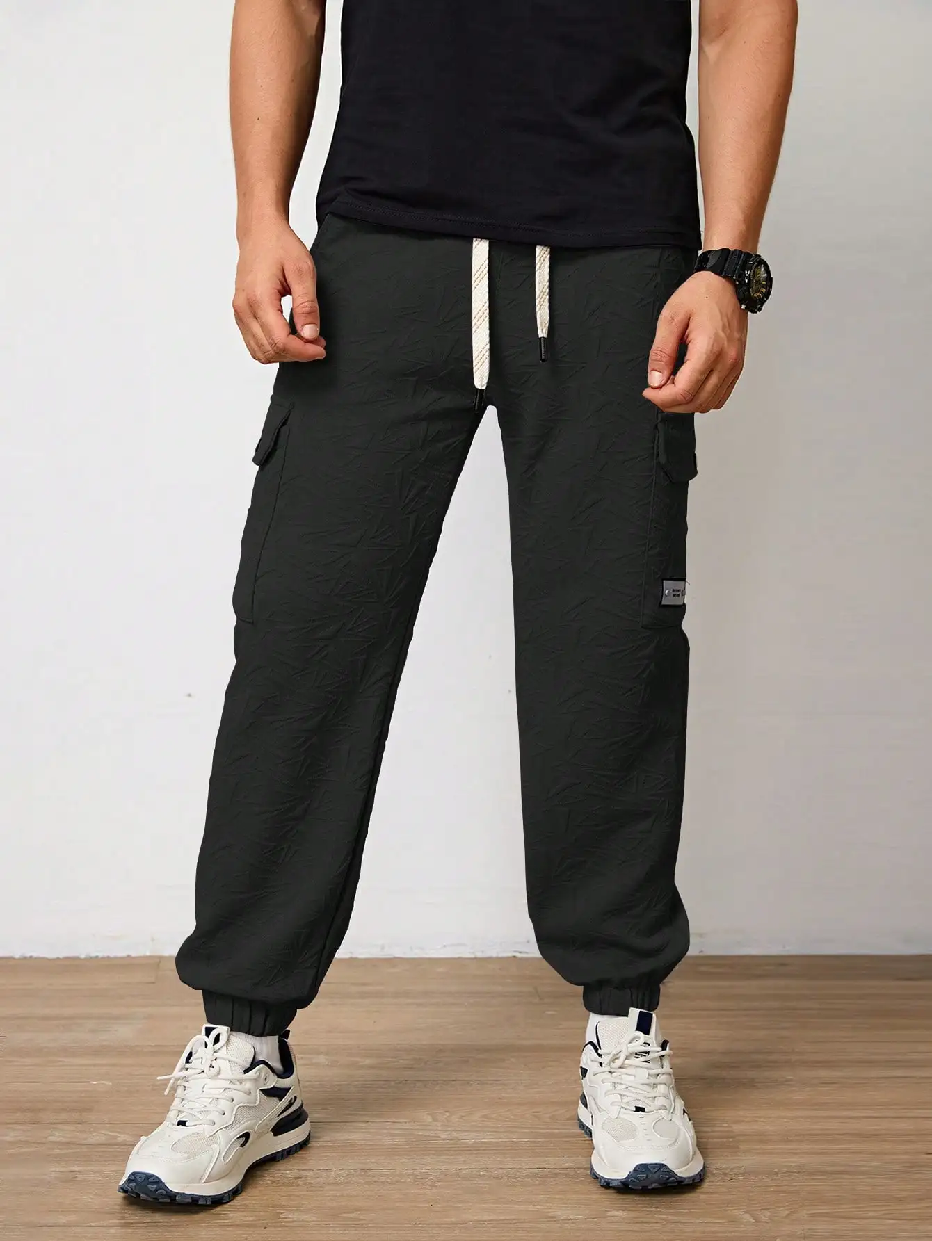 Pantalones Jogger Para Hombre De Textura Jacquard Liso,Pantslones Deportivos Casuales Con Cordón y Bolsillos Con Cremallera