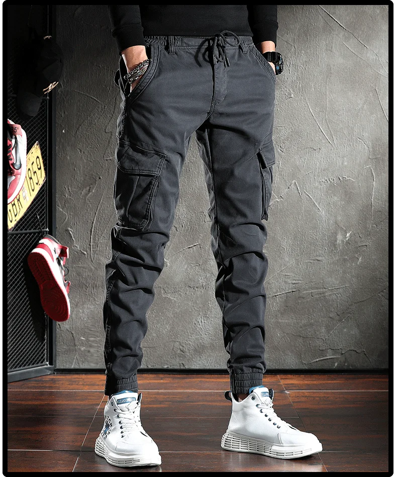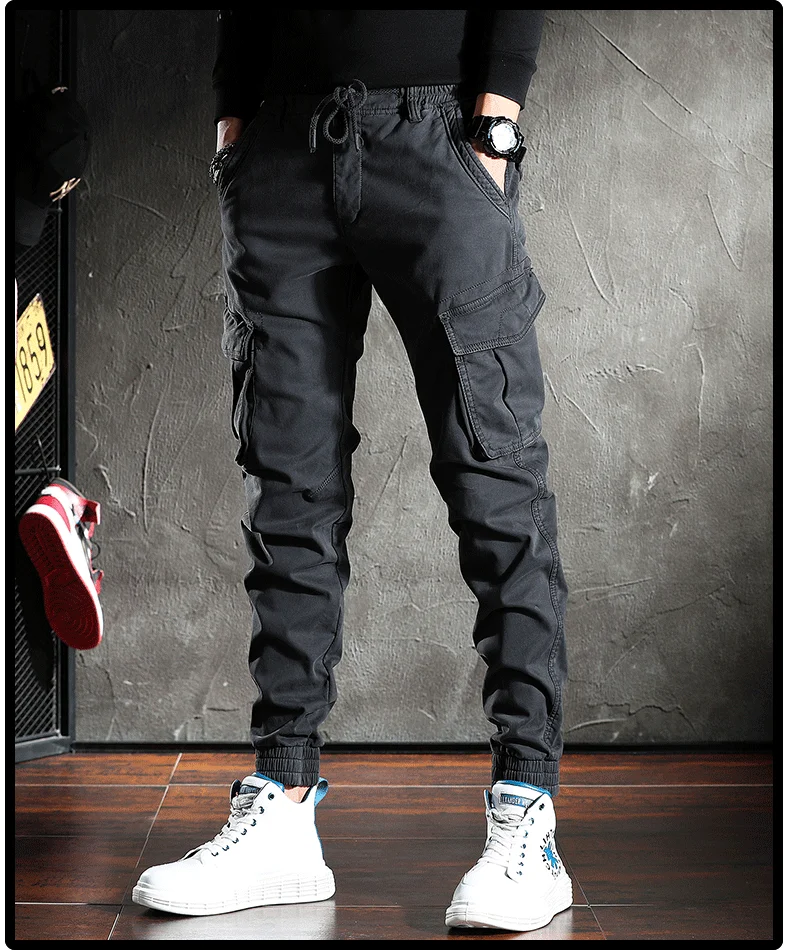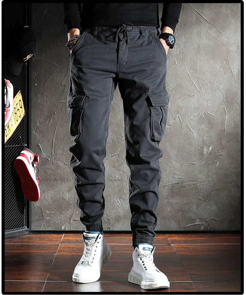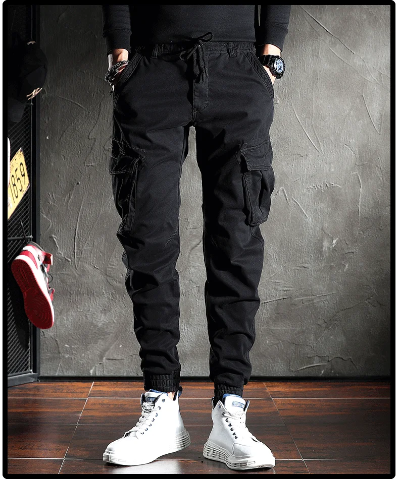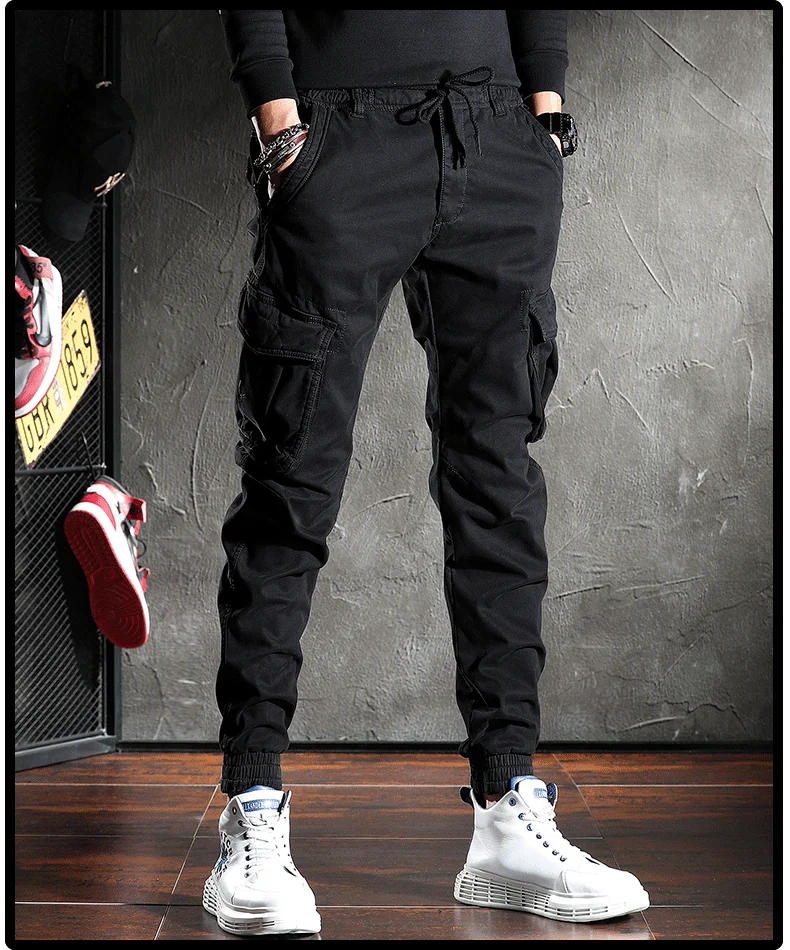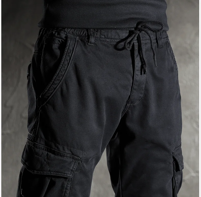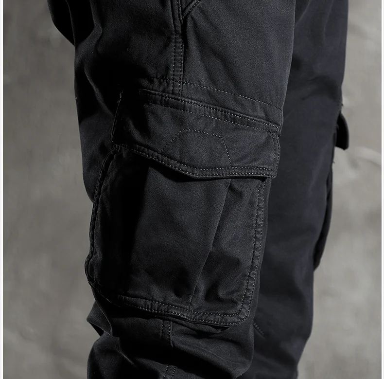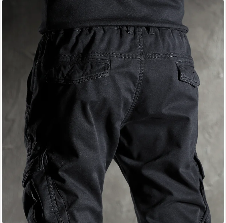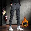 Pantalones Cargo de forro polar negro para hombre, pantalones delgados, casuales, cálidos, muchos bolsillos, moda, invierno, nuevo