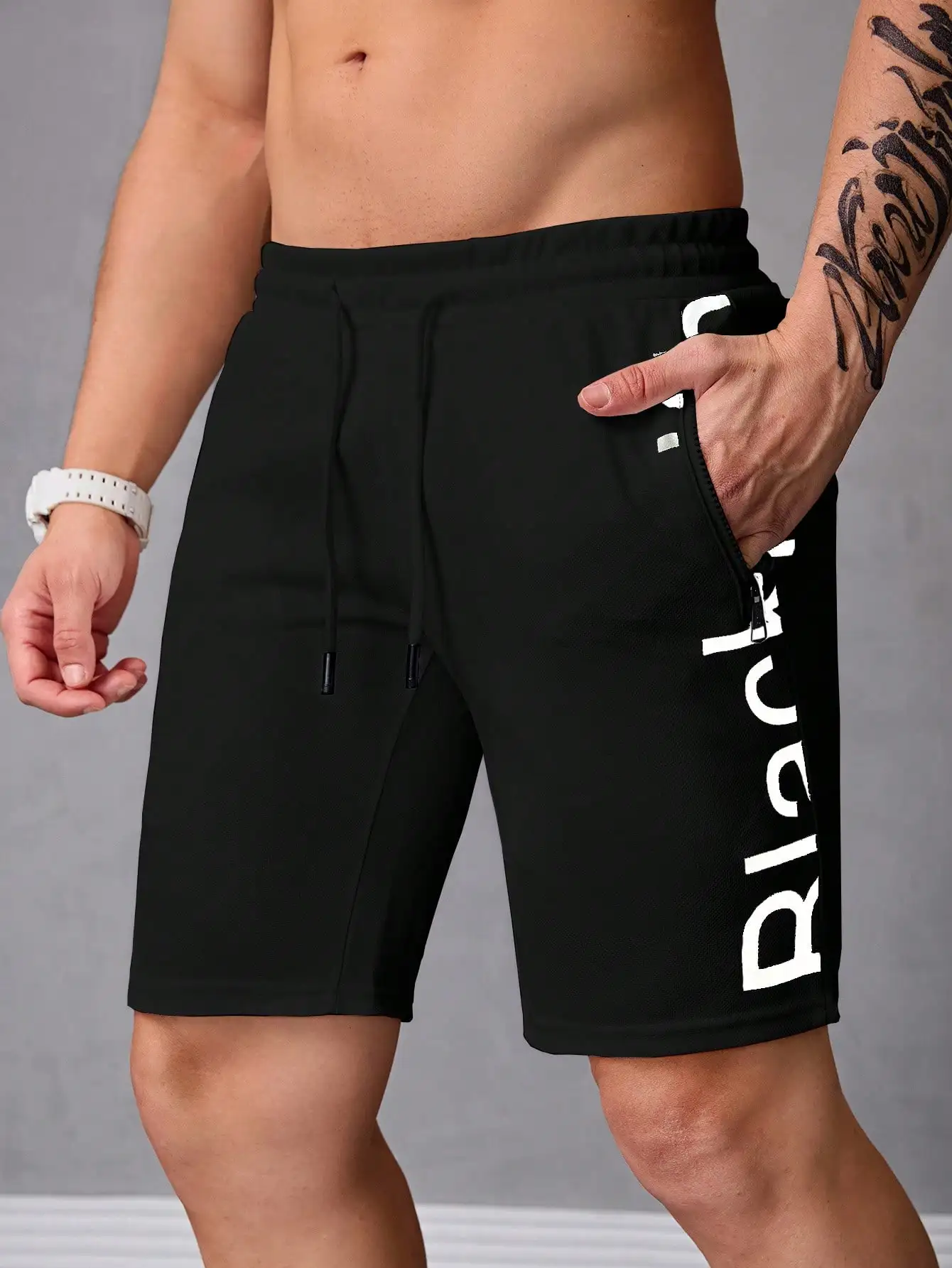 Pantalones Cortos Para Hombres Con Patrón Geométrico Con Cordón,Shorts Deportivos Con Bolsillos Con Cremallera Para Uso Diario.