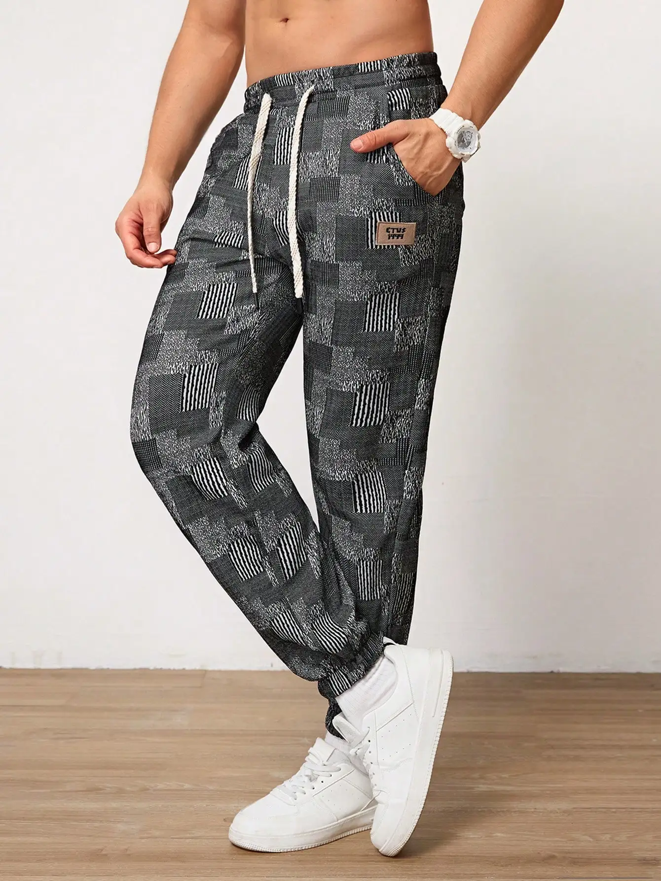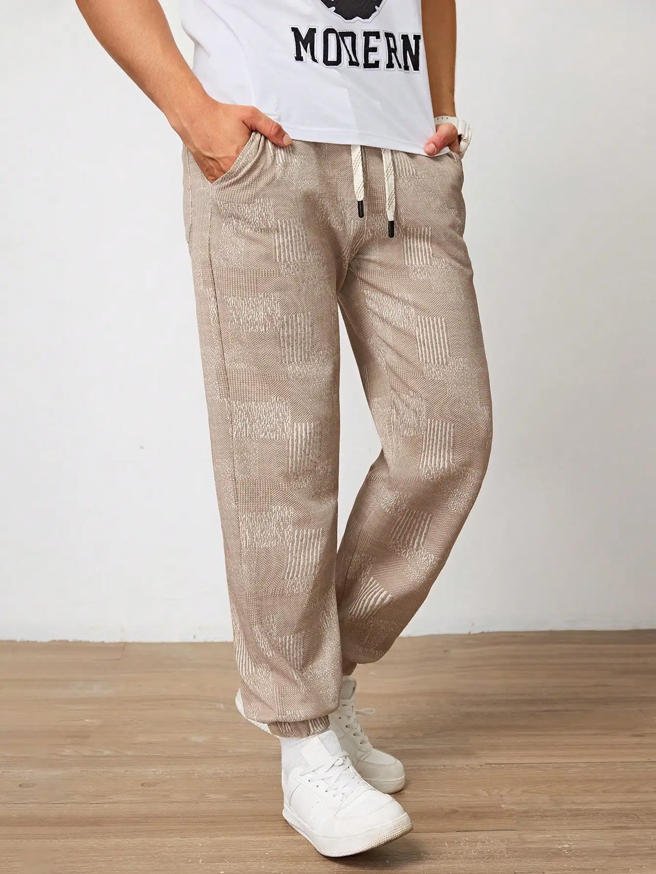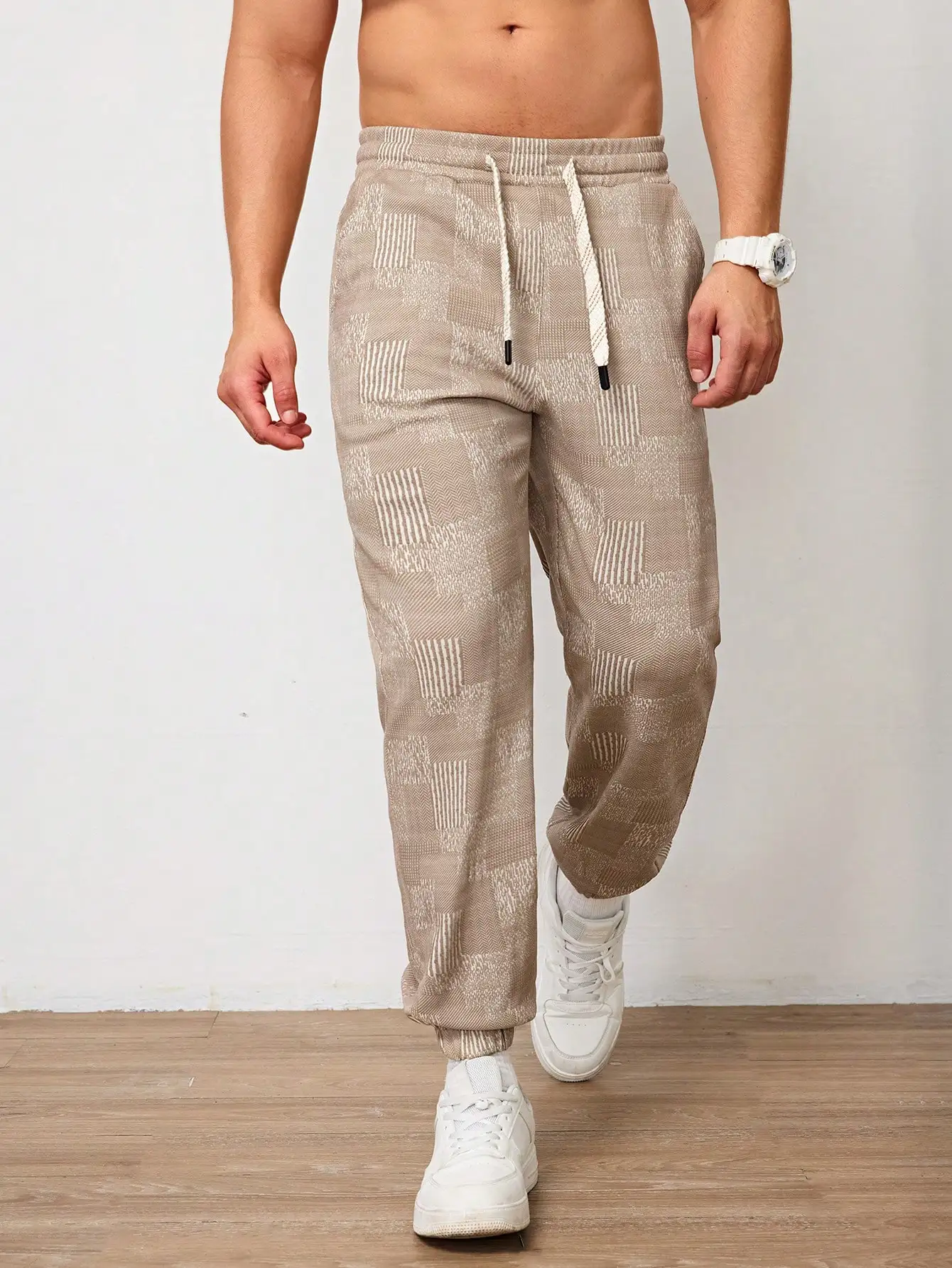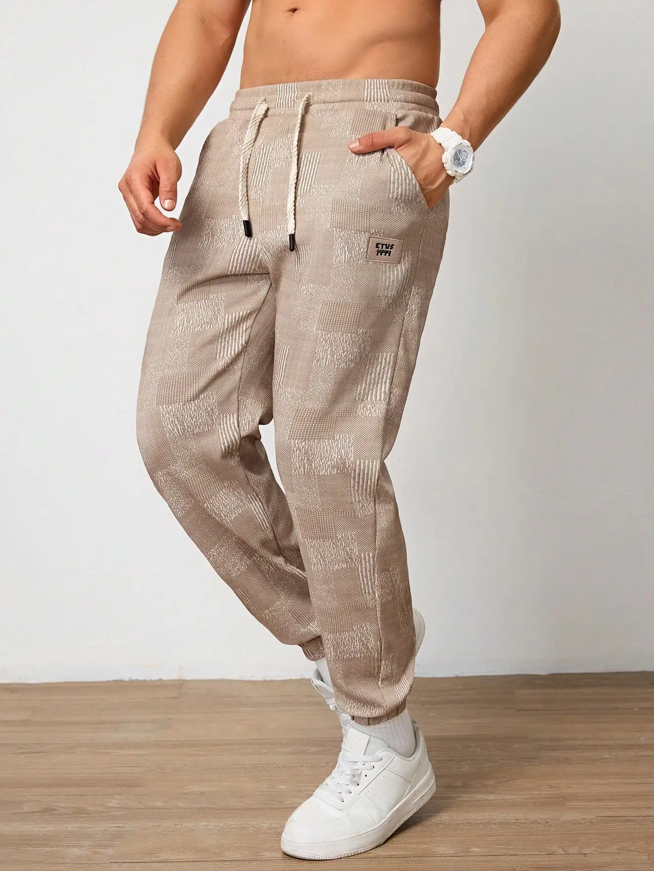 Pantalones Jogger Para Hombre De Textura Jacquard Liso,Pantslones Deportivos Casuales Con Cordón y Bolsillos Con Cremallera