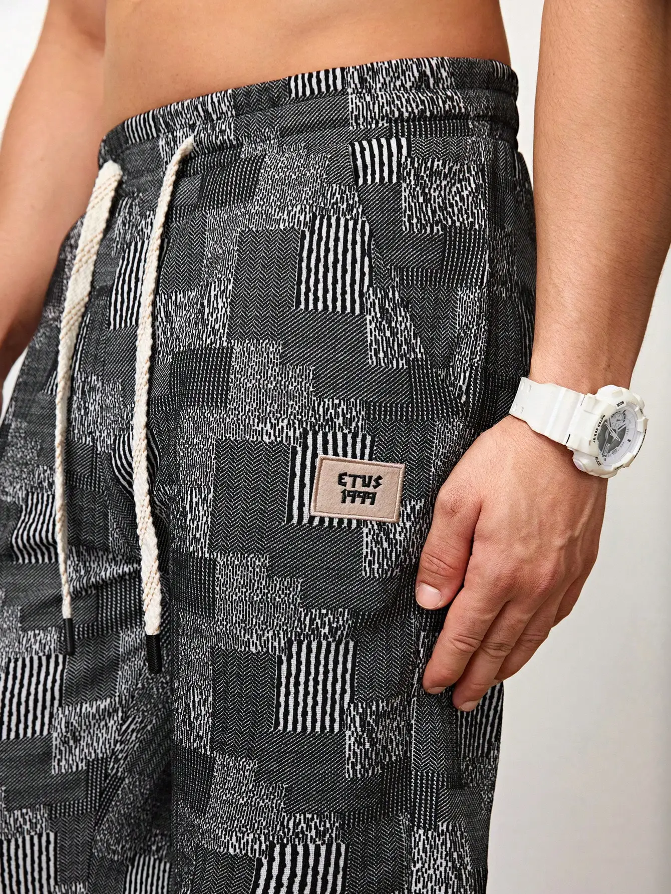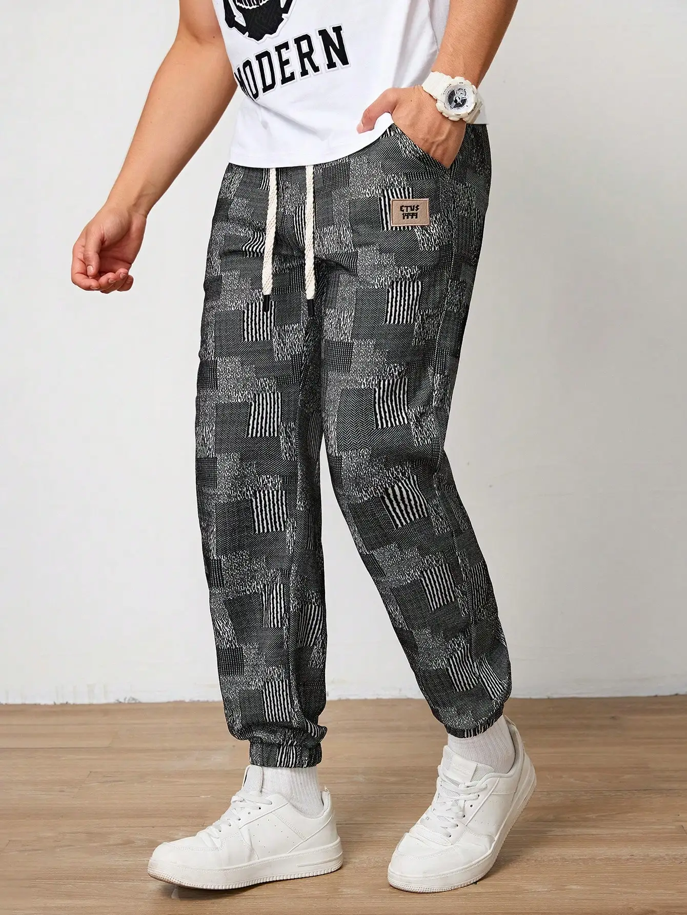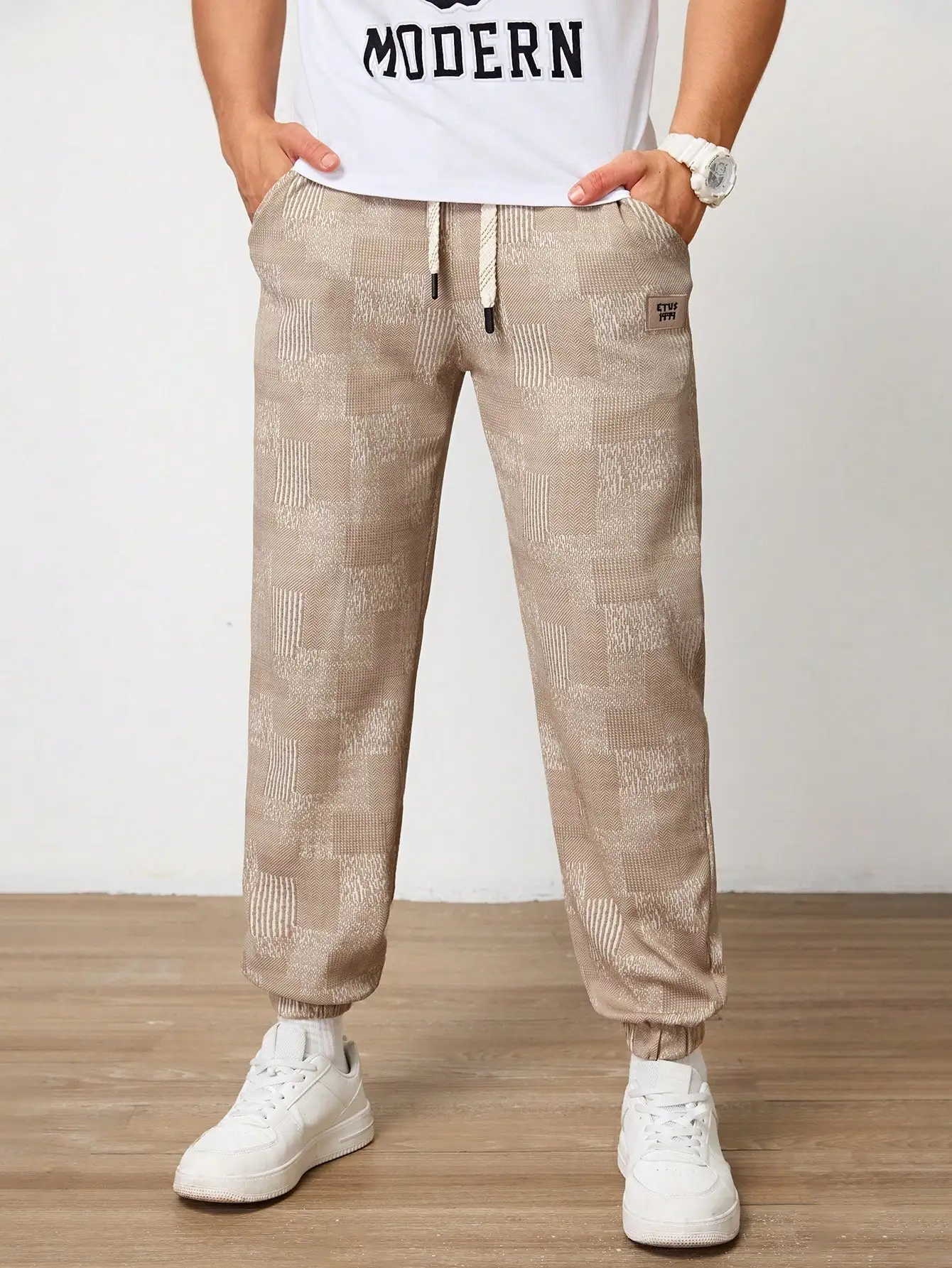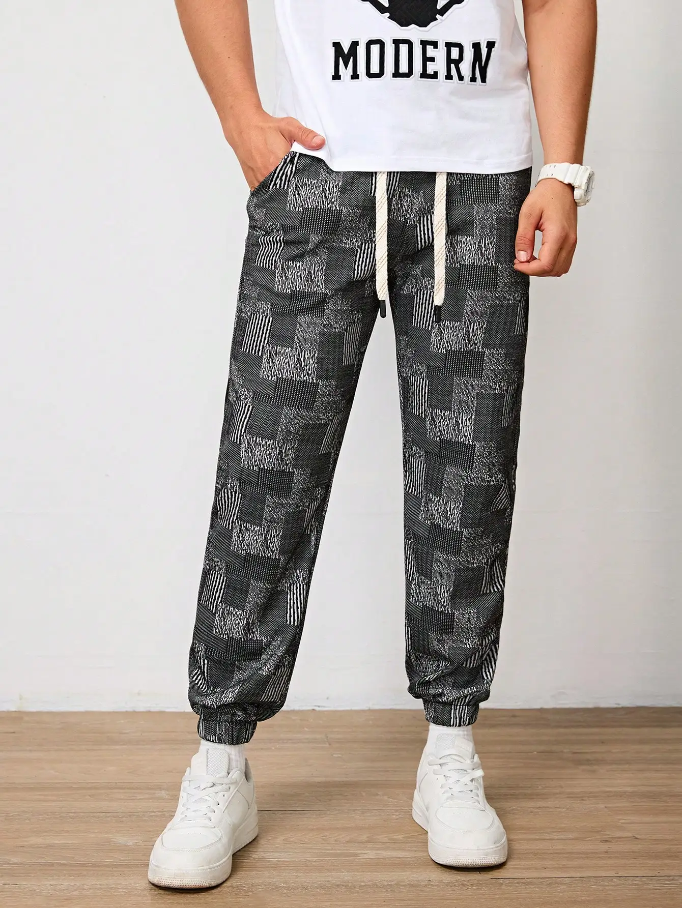 Pantalones Jogger Para Hombre De Textura Jacquard Liso,Pantslones Deportivos Casuales Con Cordón y Bolsillos Con Cremallera