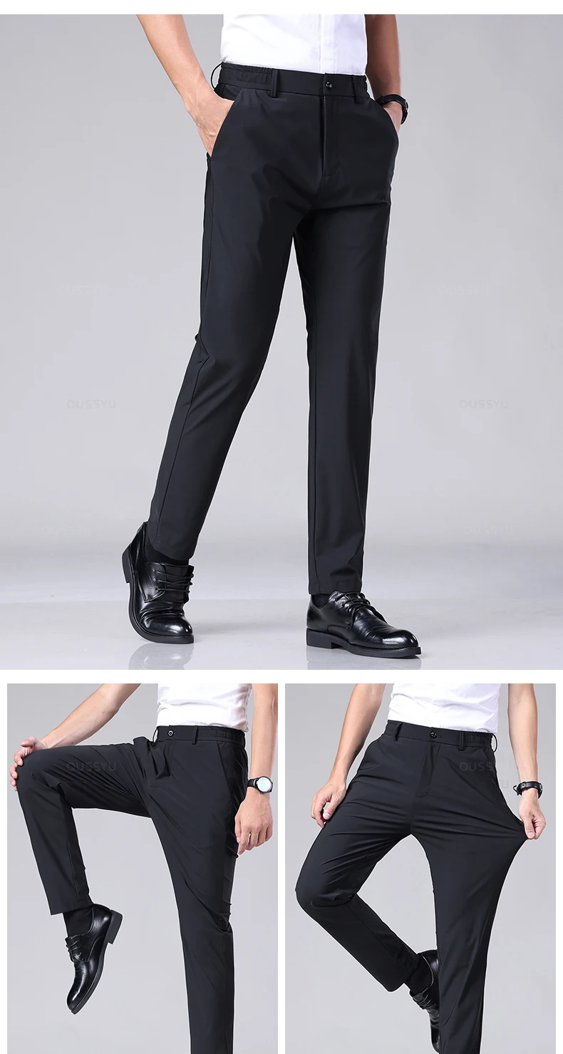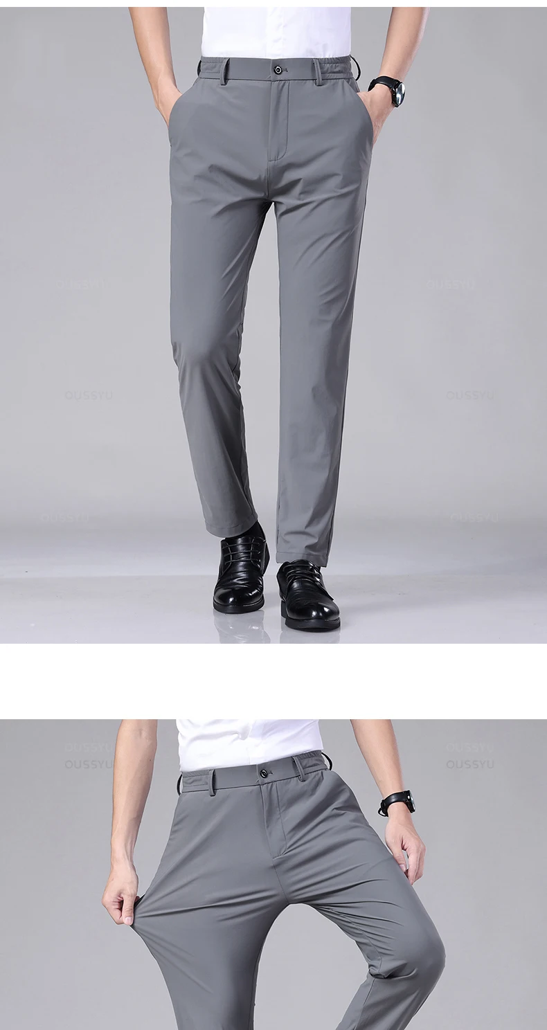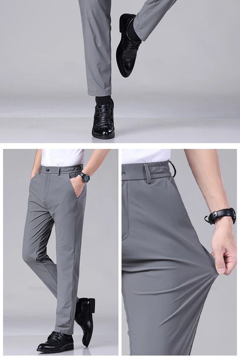 Pantalones informales elásticos para hombre, Pantalón ajustado de cintura elástica, estilo coreano clásico, color negro y gris, primavera y verano
