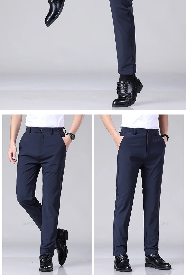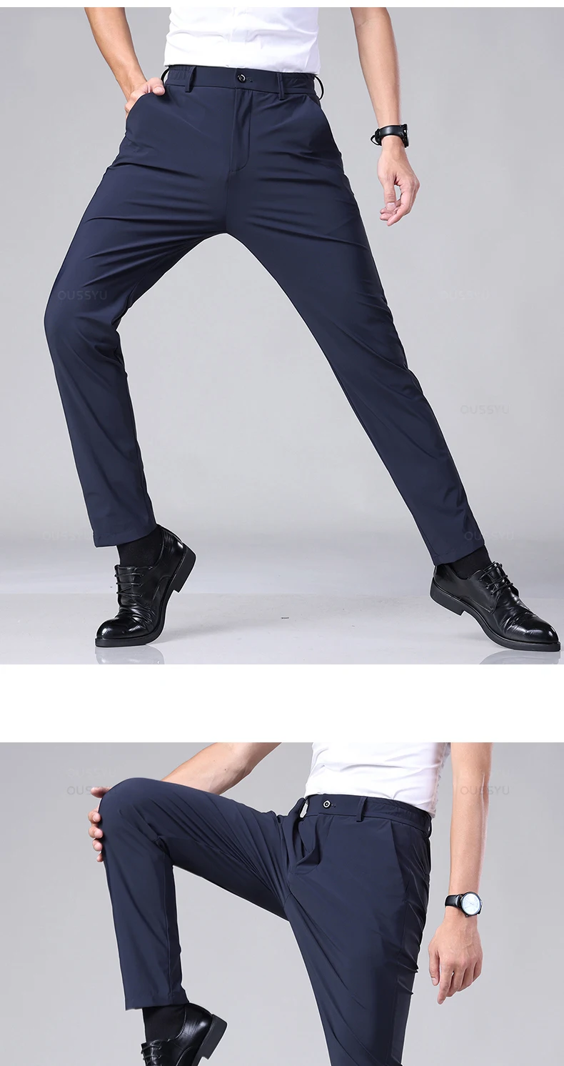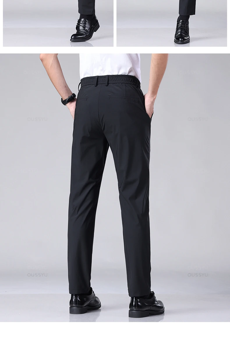 Pantalones informales elásticos para hombre, Pantalón ajustado de cintura elástica, estilo coreano clásico, color negro y gris, primavera y verano