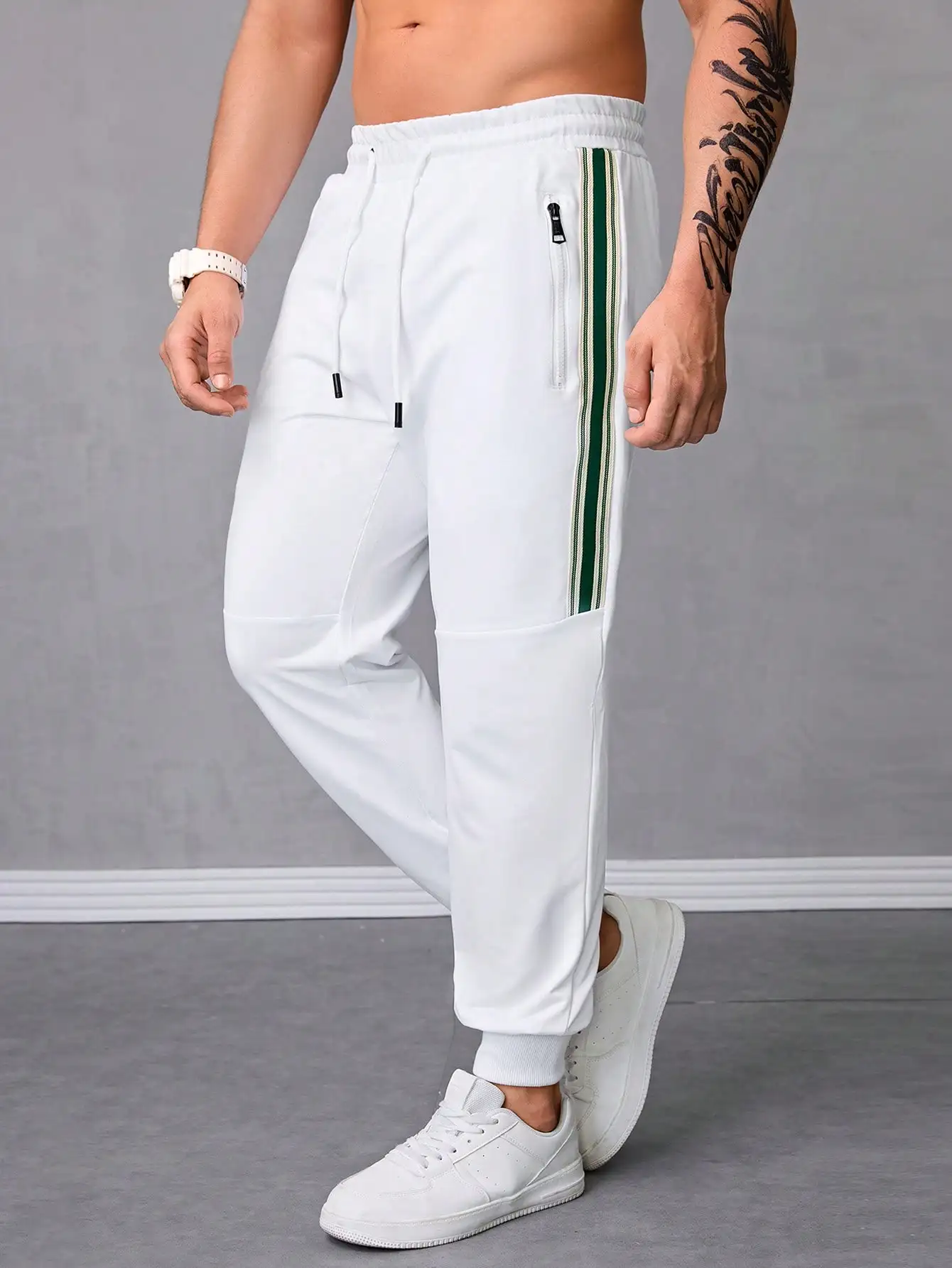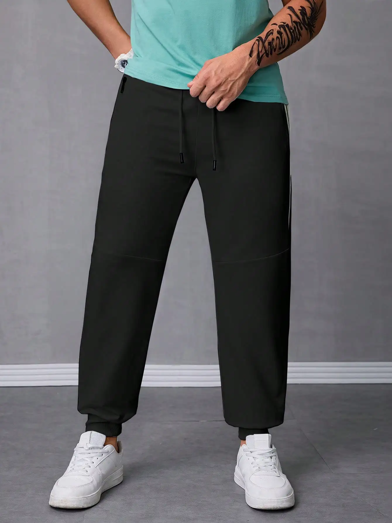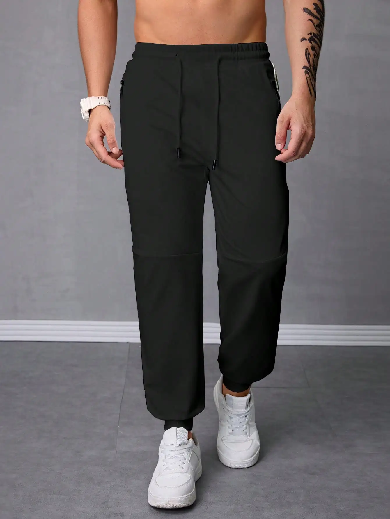 Pantalones Jogger Para Hombre De Textura Jacquard Liso,Pantslones Deportivos Casuales Con Cordón y Bolsillos Con Cremallera