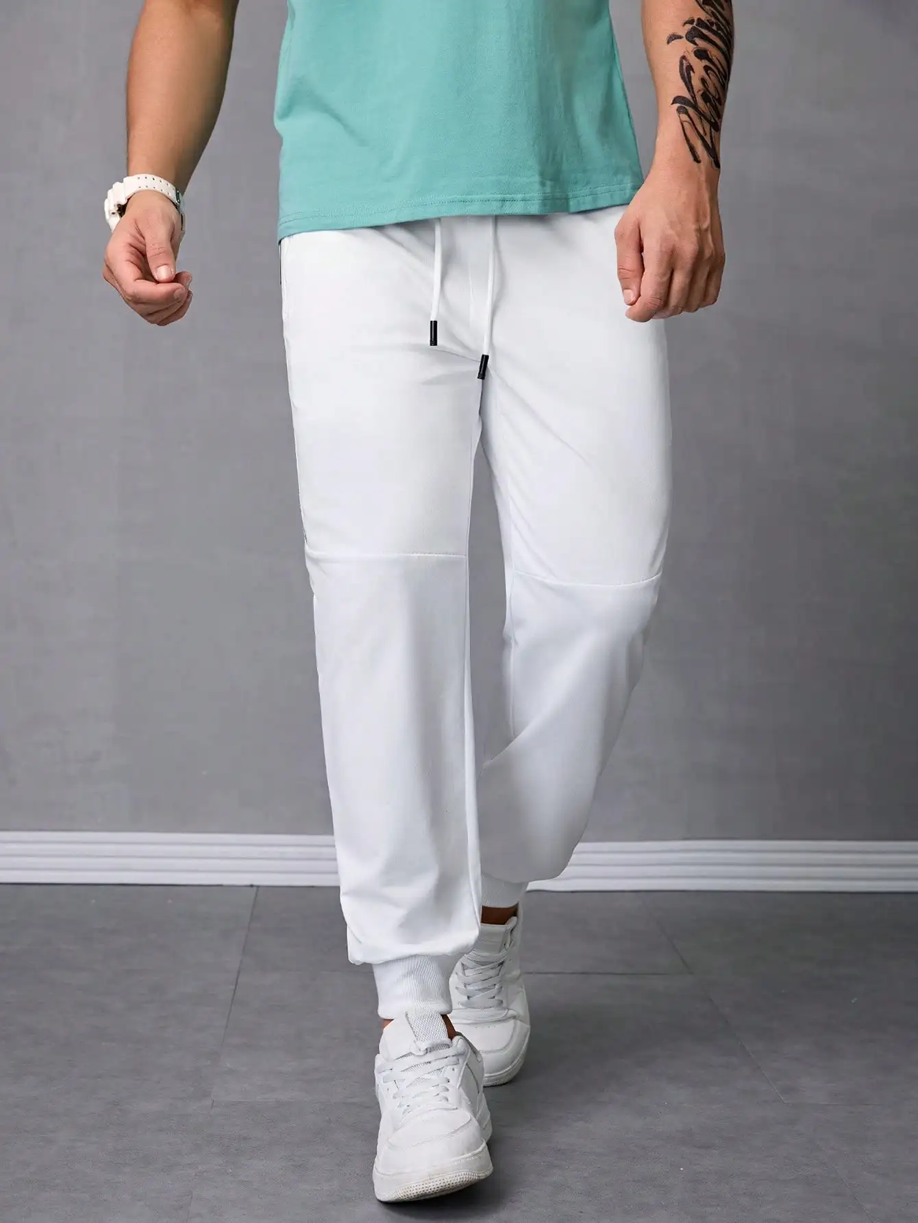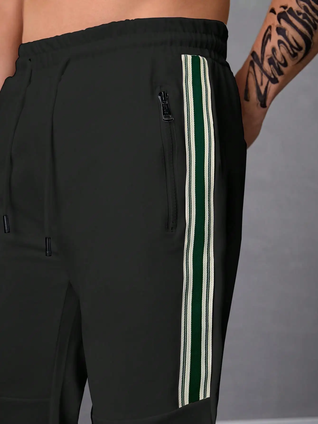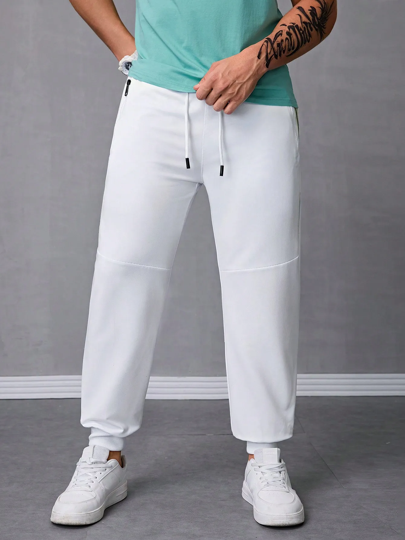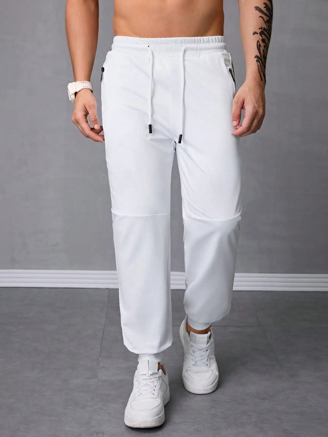Pantalones Jogger Para Hombre De Textura Jacquard Liso,Pantslones Deportivos Casuales Con Cordón y Bolsillos Con Cremallera