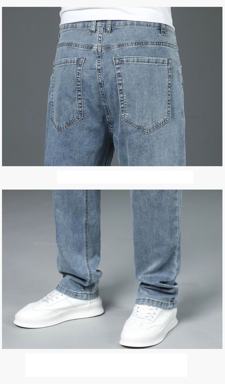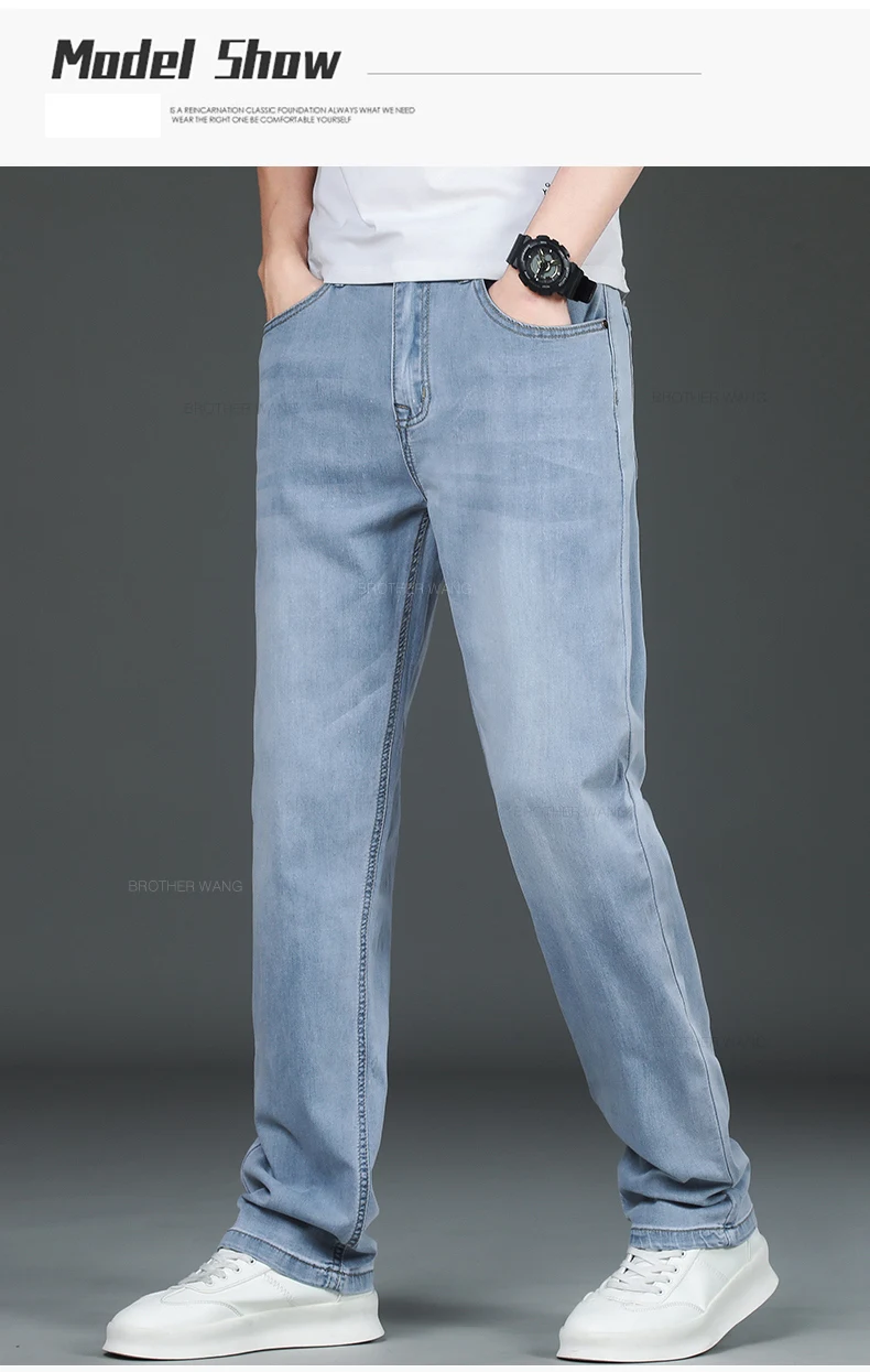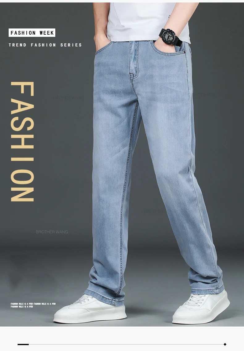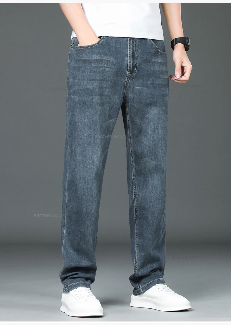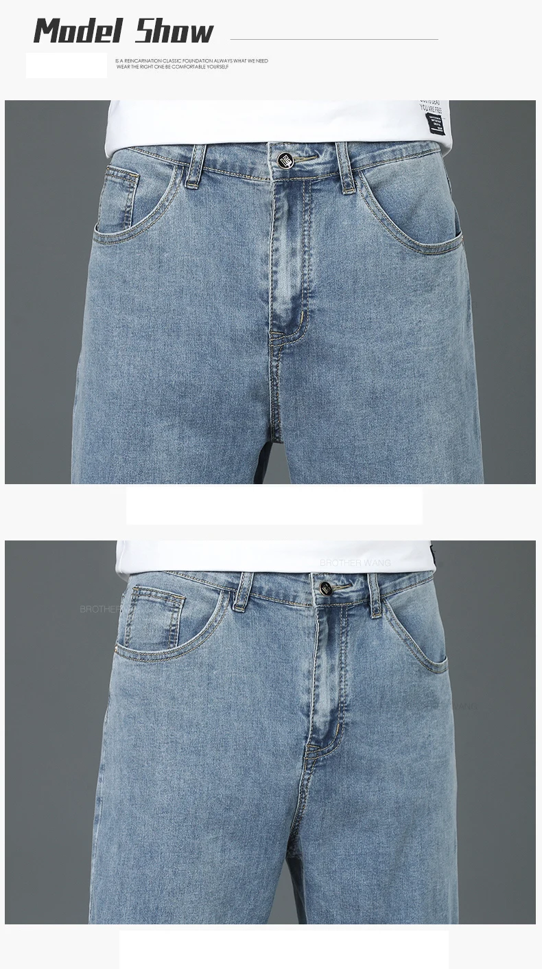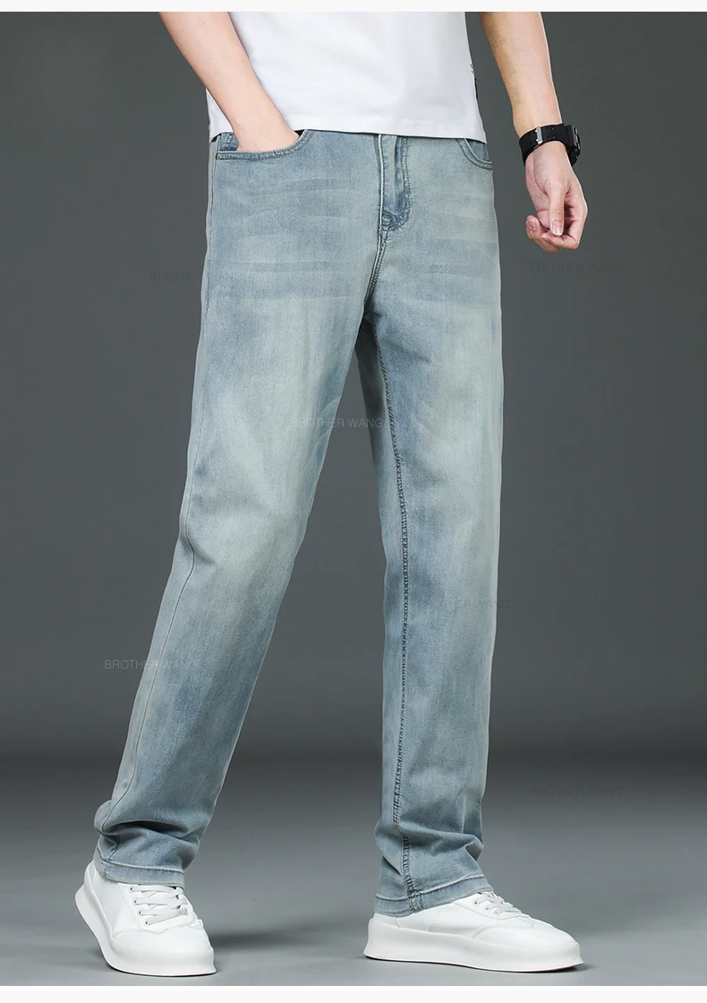 Pantalones vaqueros delgados para hombre, Vaqueros sueltos, rectos, informales, de negocios, elásticos, Retro, lavados, ropa de marca, verano, 2024, 40, 42
