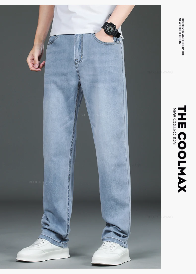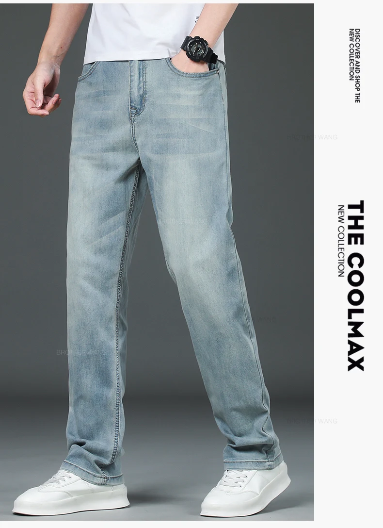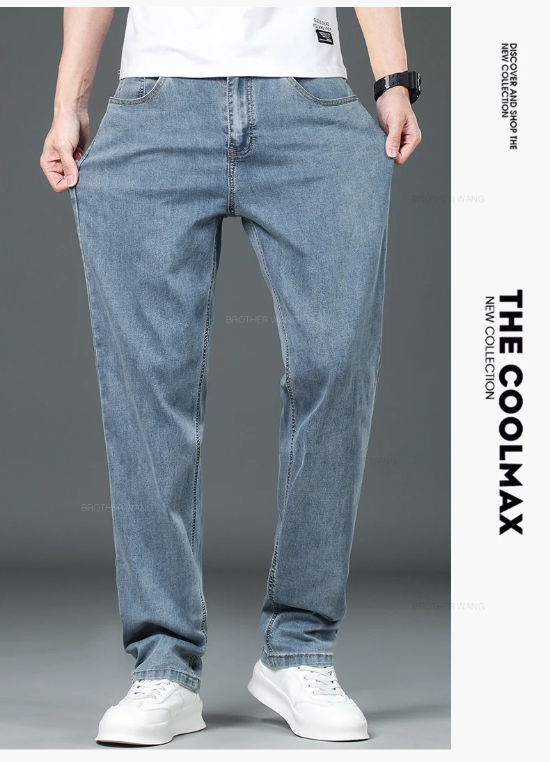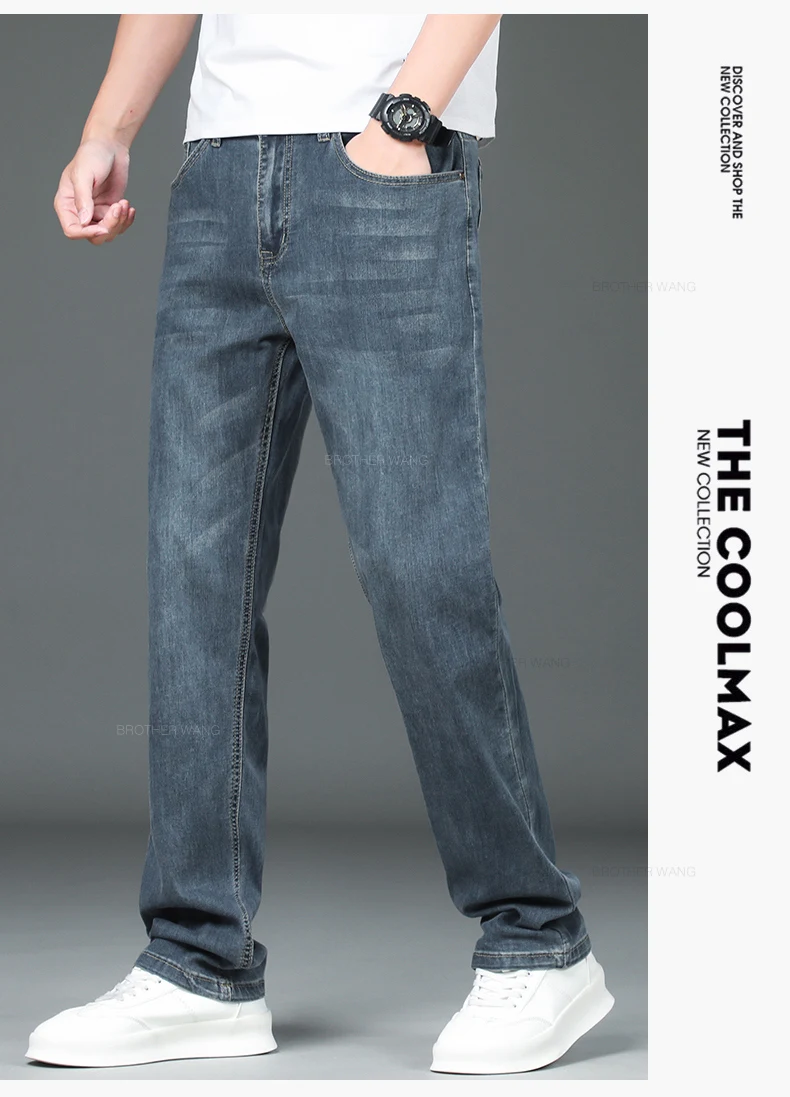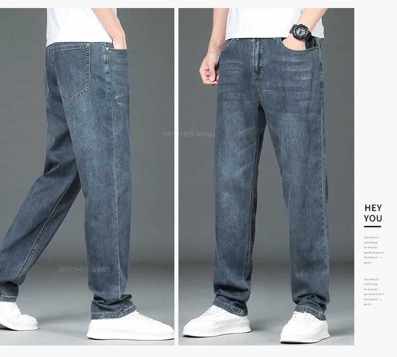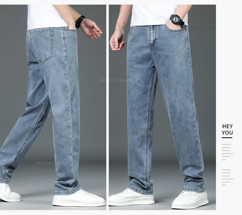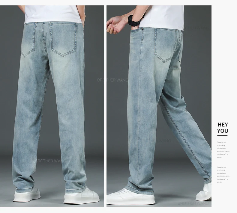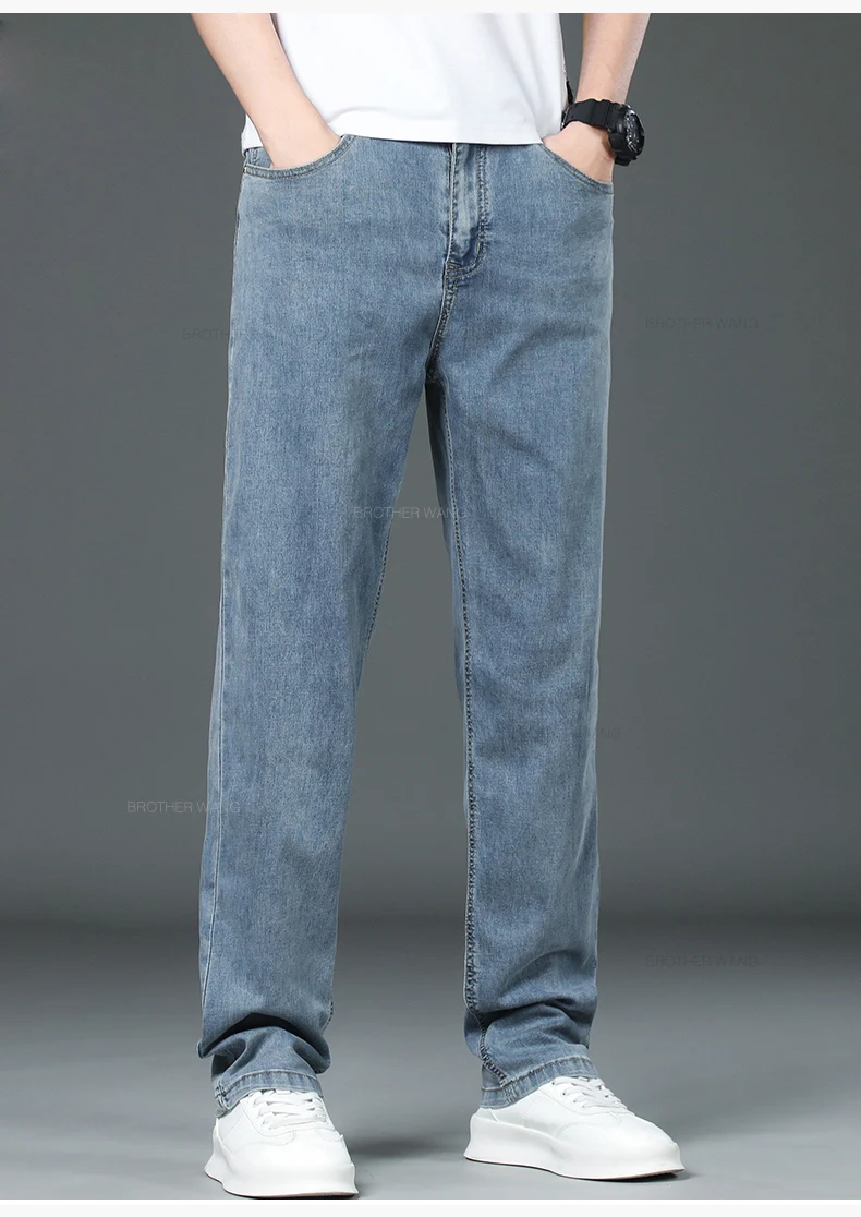 Pantalones vaqueros delgados para hombre, Vaqueros sueltos, rectos, informales, de negocios, elásticos, Retro, lavados, ropa de marca, verano, 2024, 40, 42