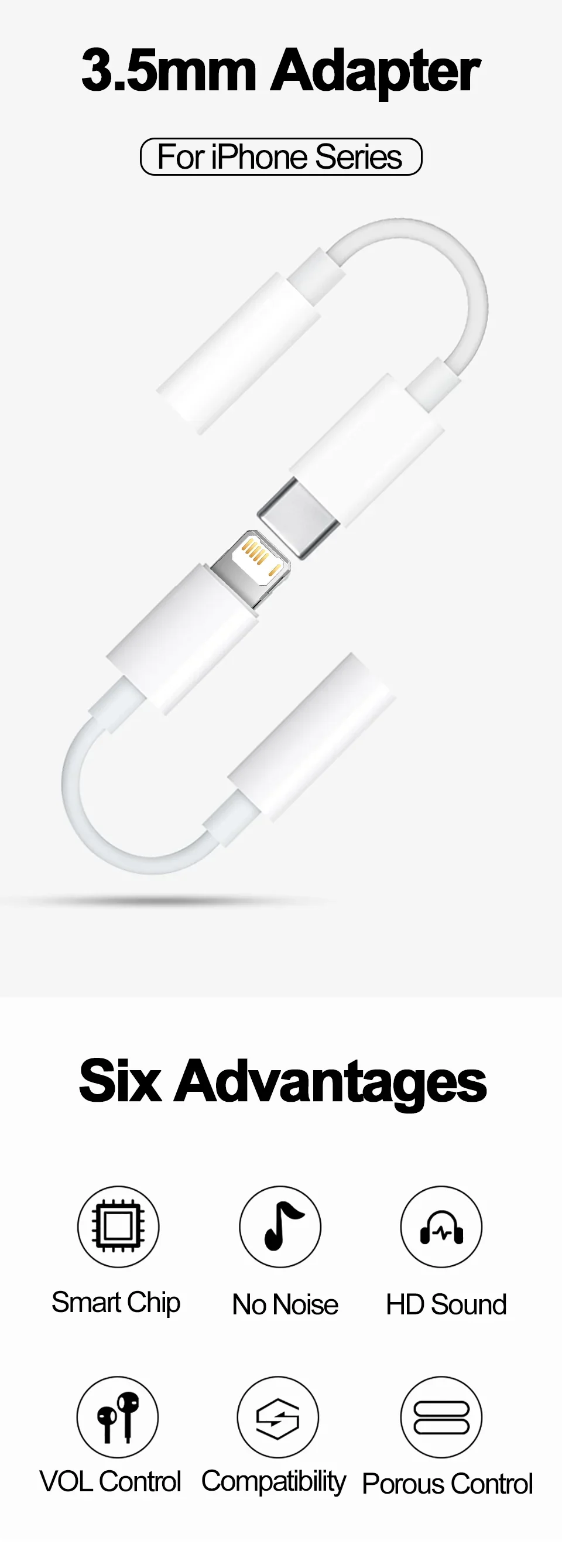 Headphone adapter is designed for iPhone lovers. Suitable for iPhone 14/14 Plus/14 Pro/14 Pro Max/For iPhone 13/13 Pro/13 Pro Max/12/12 Pro/12 Pro Max/11/11 Pro Max, iPhone XR/XS/XS Max/X, iPhone 8/8 Plus, iPhone 7/7 Plus 6/6Plus iPod/iPad and other iOS systems. This adapter can be used with any 3.5mm jack accessories. Integrated into the smart chip, you don’t have to worry about system updates.