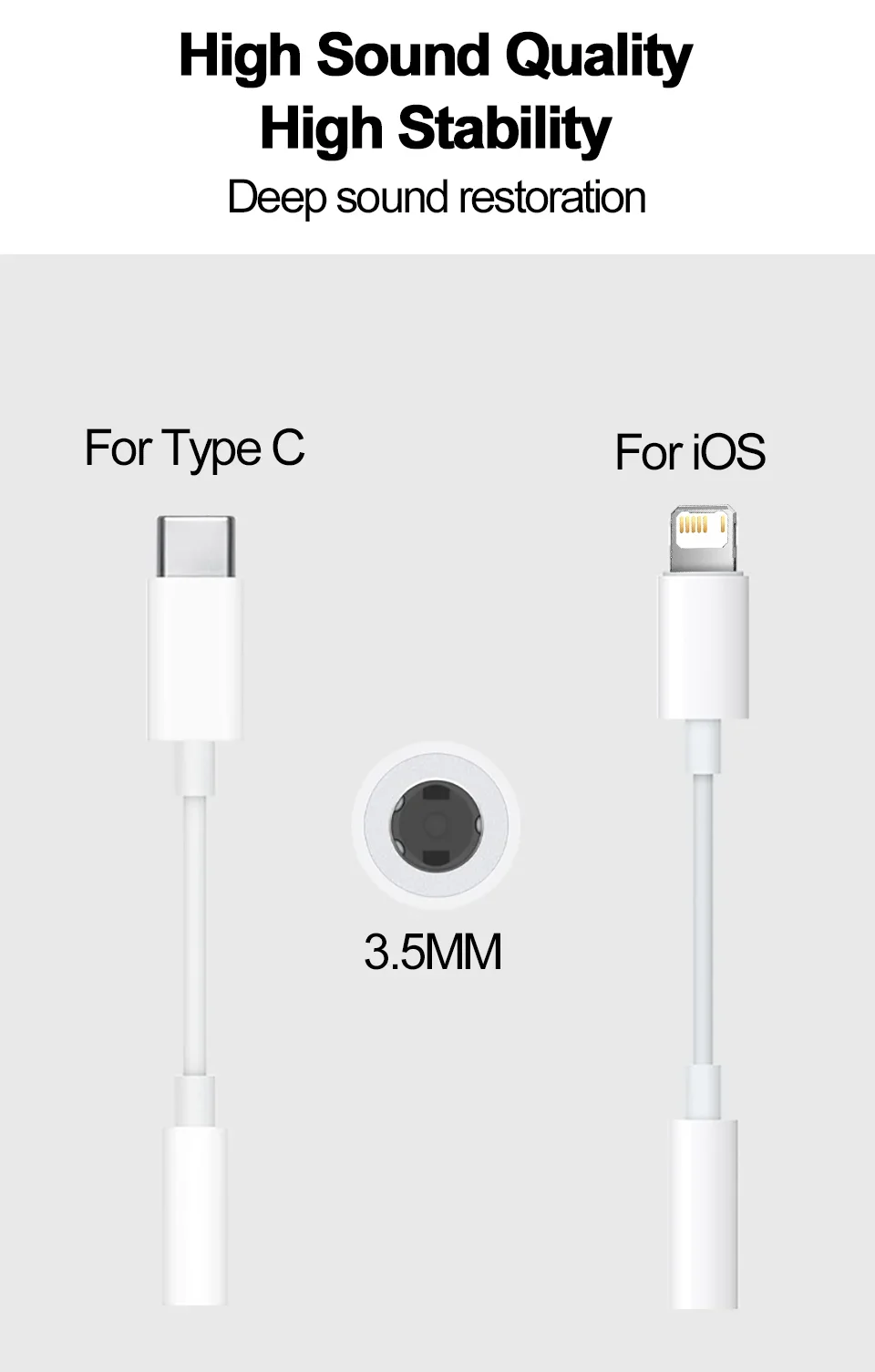 For iOS to 3.5MM adapter adopts advanced noise reduction technology, professional design, supports up to 48 kHz, 26-bit audio output, can provide you with perfect sound. When you use the converter to connect your device to the headset, you can enjoy the good music without damage.