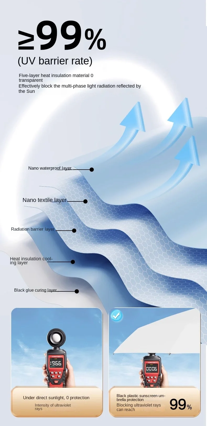 • Protección solar y sombra: el material de recubrimiento negro del paraguas proporciona una amplia sombra y lo protege de los dañinos rayos UV, lo que garantiza una experiencia al aire libre segura y cómoda.